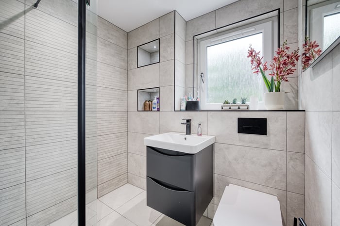 Upstairs, you are greeted by carpeted flooring leading to bedrooms one and two, both continuing the light décor and carpet finish while also benefiting from built-in cupboards for storage, with bedroom three offering wood-effect flooring and its own built-in cupboard. Completing the home is the fully tiled family bathroom, which includes a modern shower cubicle.