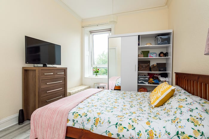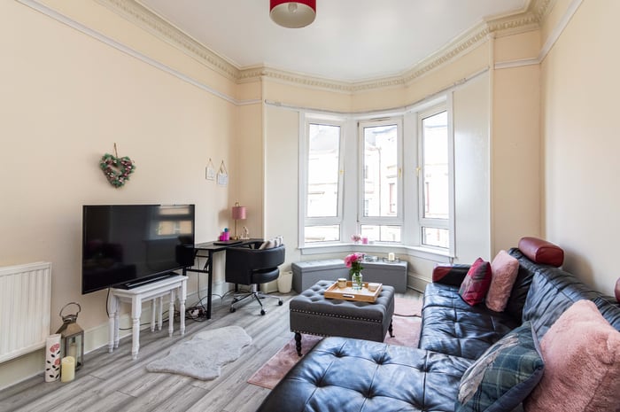 • Very spacious and well presented, one bedroom, second floor flat, set in a traditional stone-built tenement.