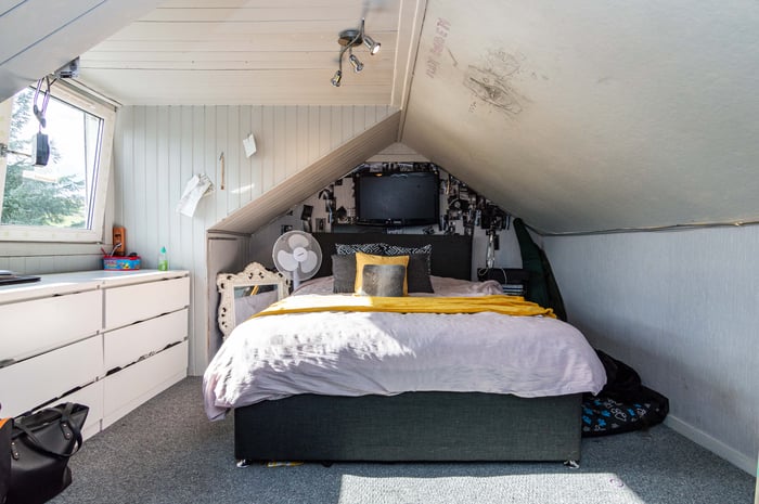 Set to the front, the family-size bathroom is fitted with a white three-piece suite and a shower over the bath. Set on the second floor, two further bedrooms are set to opposite aspects, both similarly sized and finished with carpeted flooring.
