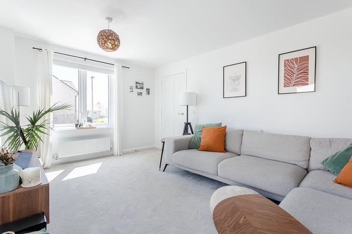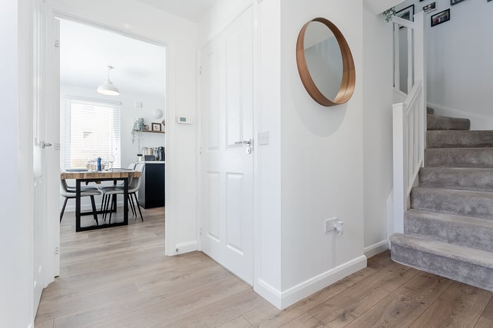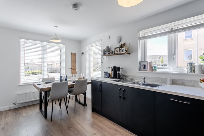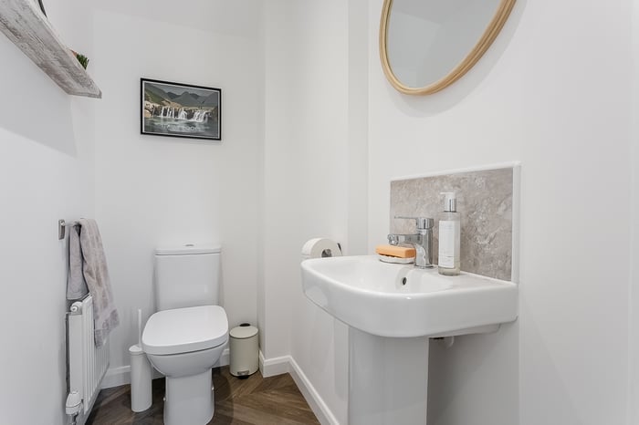 Situated within a peaceful modern development in Bilston, near Roslin, this beautifully presented three-bedroom end-terrace home boasts private gardens, just south of Edinburgh. The property opens into a welcoming entrance hall that provides access throughout the ground floor, including to a convenient WC and the staircase to the upper level.