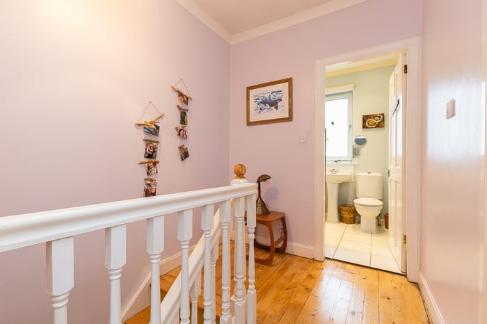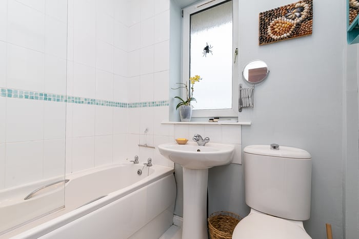 Completing the accommodation, a family bathroom is fitted with a three-piece suite, with a shower-over-bath and tiled splash walls.