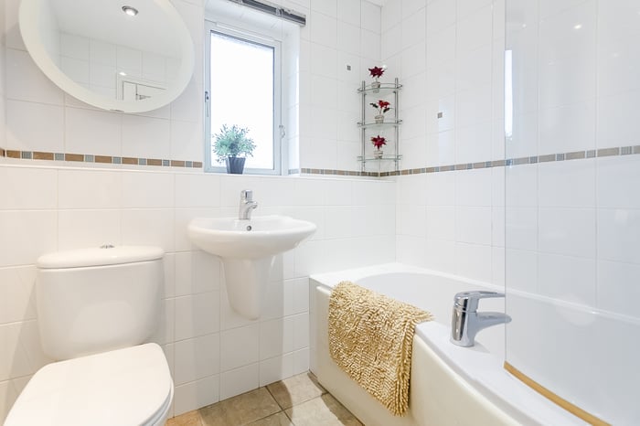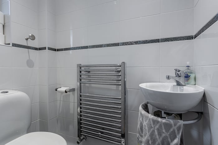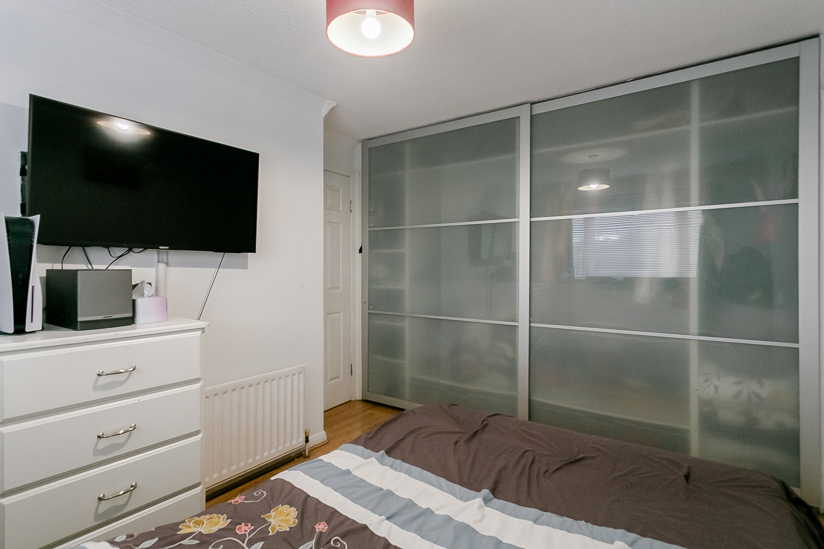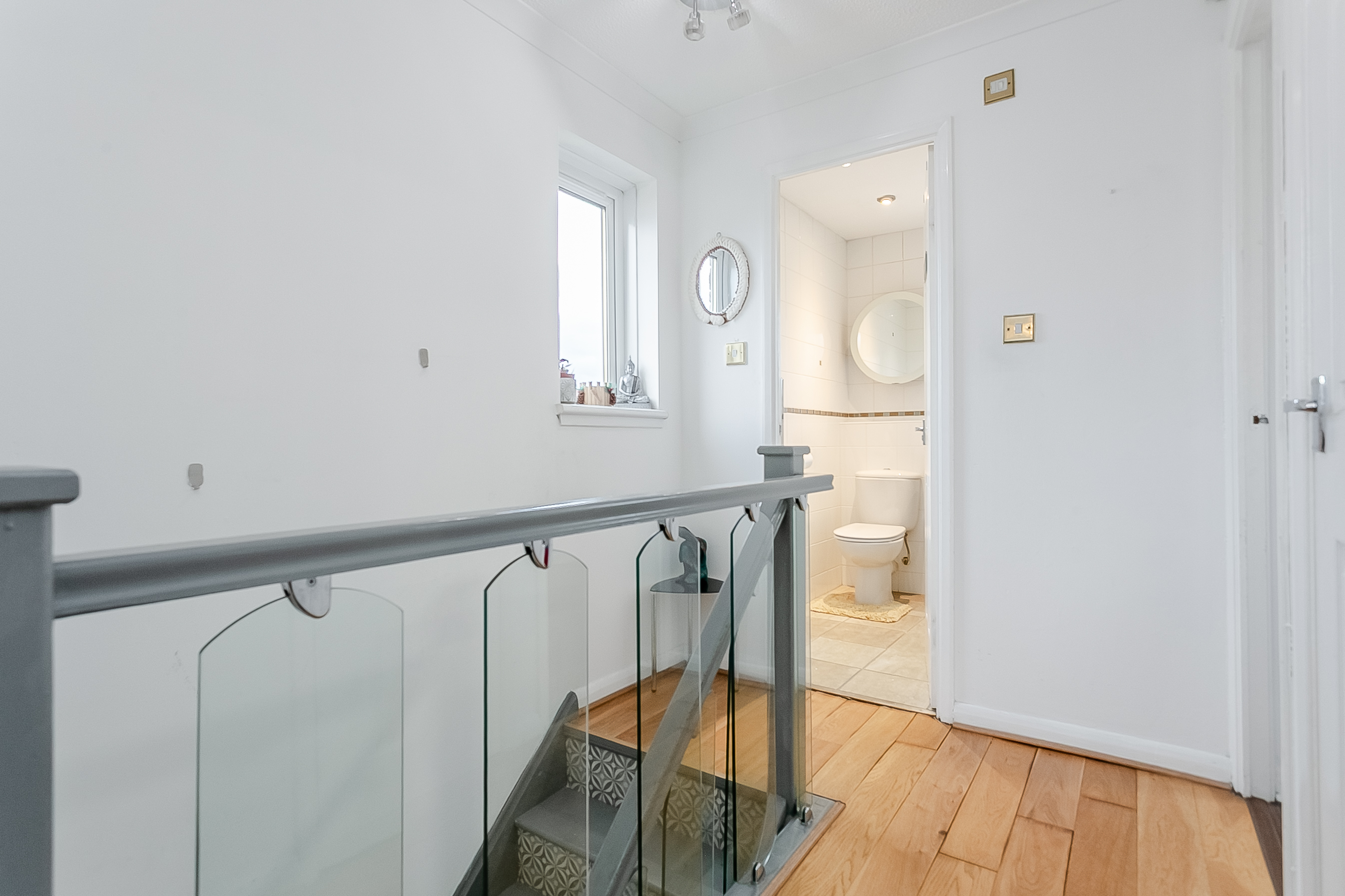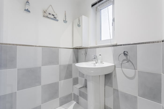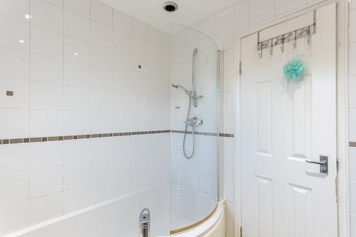 The upper level hosts three further well-proportioned bedrooms, with bedrooms three and four featuring built-in wardrobes. Completing the accommodation is a family-sized bathroom, fitted with a three-piece suite including a shower over the bath, tiled splashbacks and a ladder-style radiator.