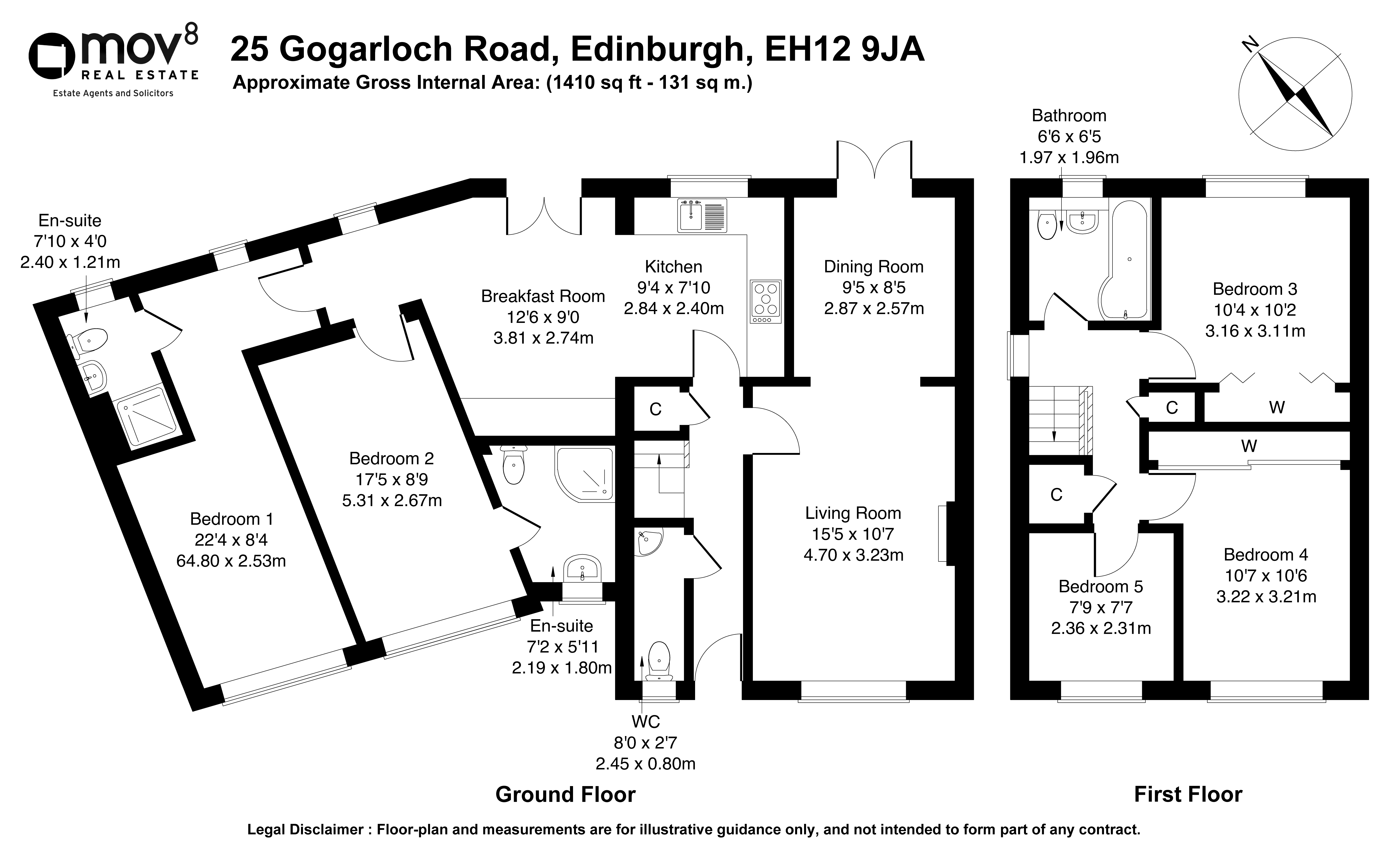 • Comprises an entrance hallway, living and dining room, kitchen, four double bedrooms, a single bedroom, two en-suite showers, a family bathroom and a WC.