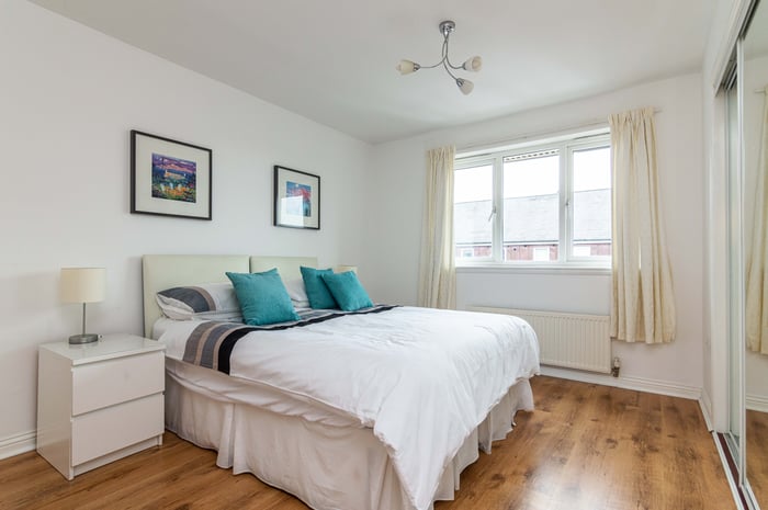 The master bedroom features a built-in wardrobe, laminate flooring and an en-suite shower room fitted with a two-piece suite and shower cubicle with a mains mixer shower, whilst bedrooms two and three both include a built-in wardrobe and are equally well finished. Set internally off the hall, the bathroom is fitted with a modern three-piece suite with a separate cubicle including a mains shower.
