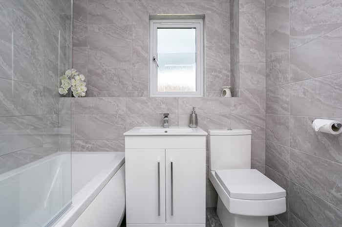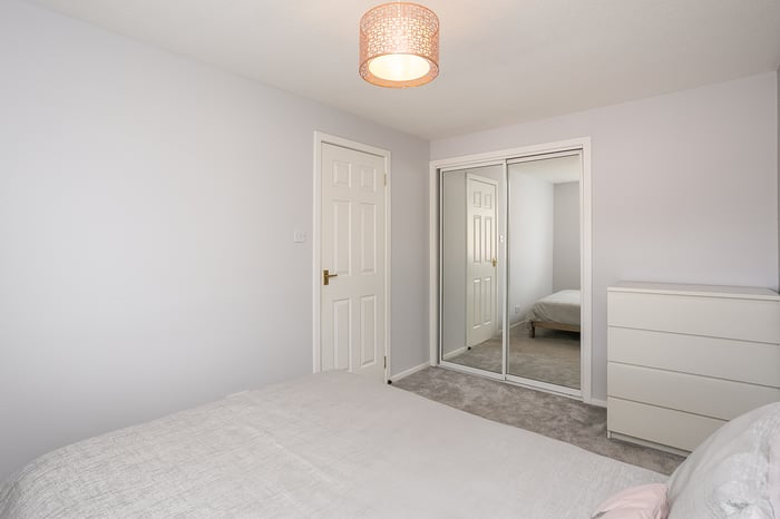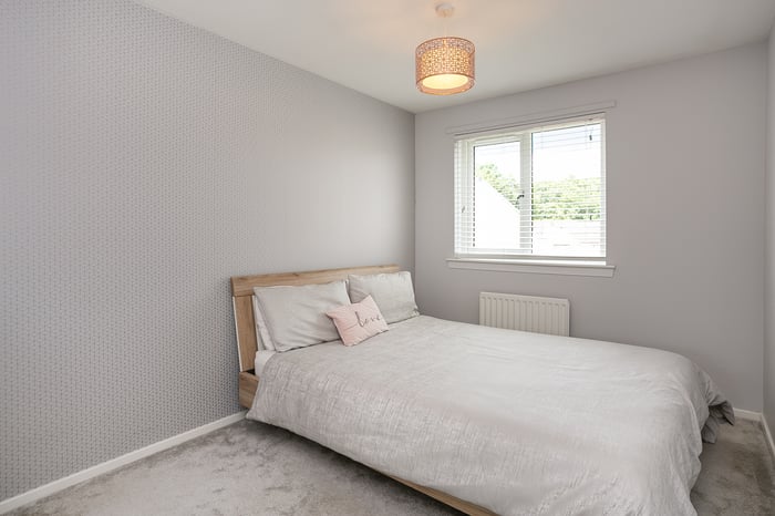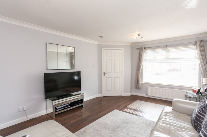 Two flexible bedrooms are set to the front, whilst the main bedroom enjoys built-in wardrobe storage and rear garden views. Completing the accommodation, a family bathroom comprises a contemporary three-piece suite, a shower-over-bath, a chrome, ladder-style radiator, vanity storage and tiled splash walls and flooring.