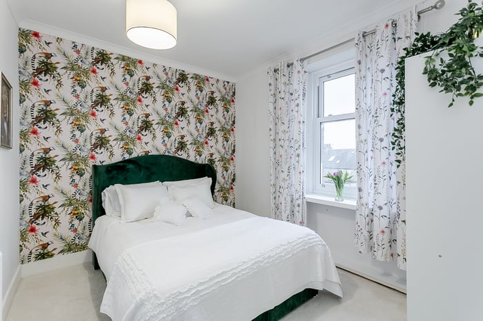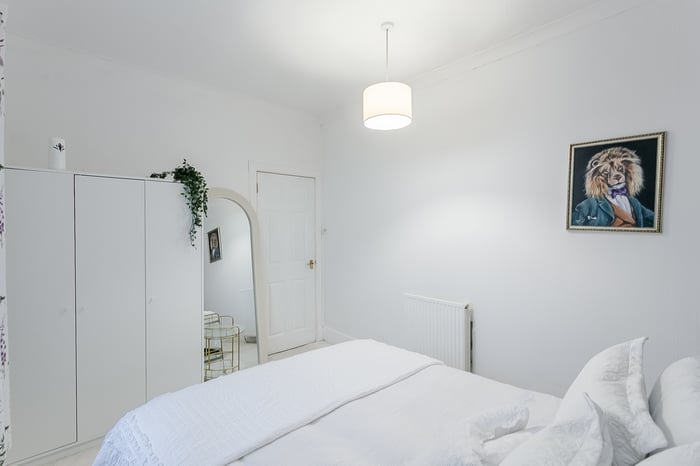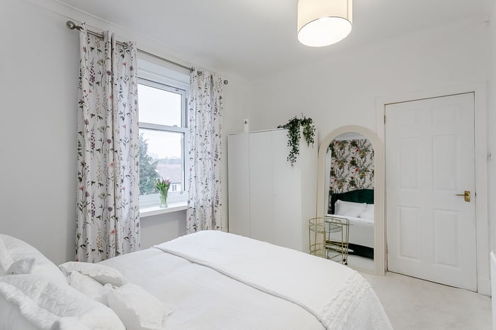 The bedroom is a well-proportioned and peaceful retreat, complete with carpeted flooring and a central light fitting. There is plenty of space for a double bed and additional furnishings, with room to create a comfortable and restful environment tailored to your needs.