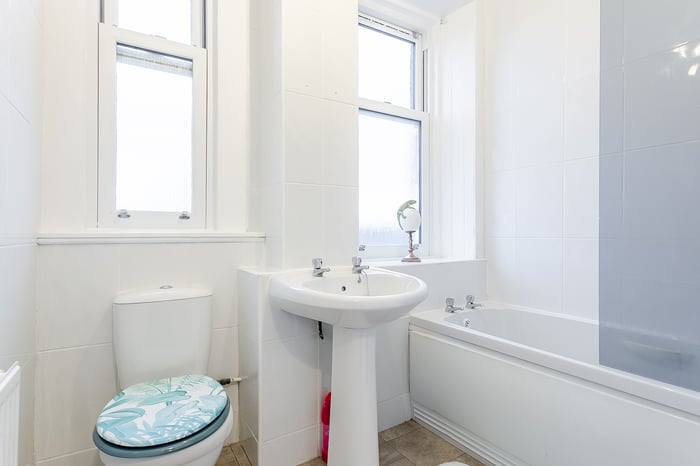 Completing the property is the three-piece fitted bathroom, featuring tiled flooring, a tiled splashback surround, a central light fitting and a shower over the bath, offering both convenience and comfort.
