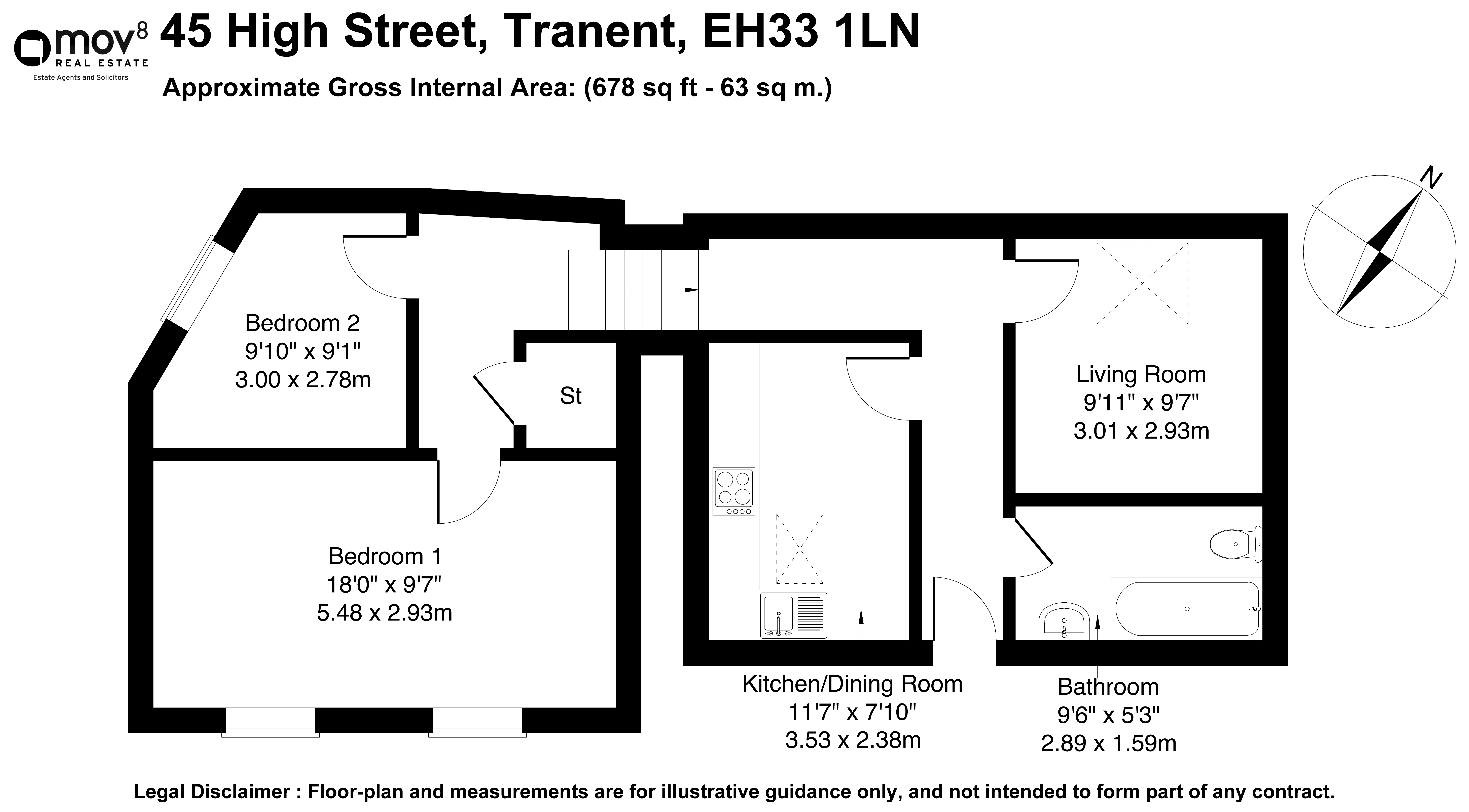 • Comprises an entrance hallway, living room, dining/kitchen, two flexible bedrooms, and a family bathroom.
