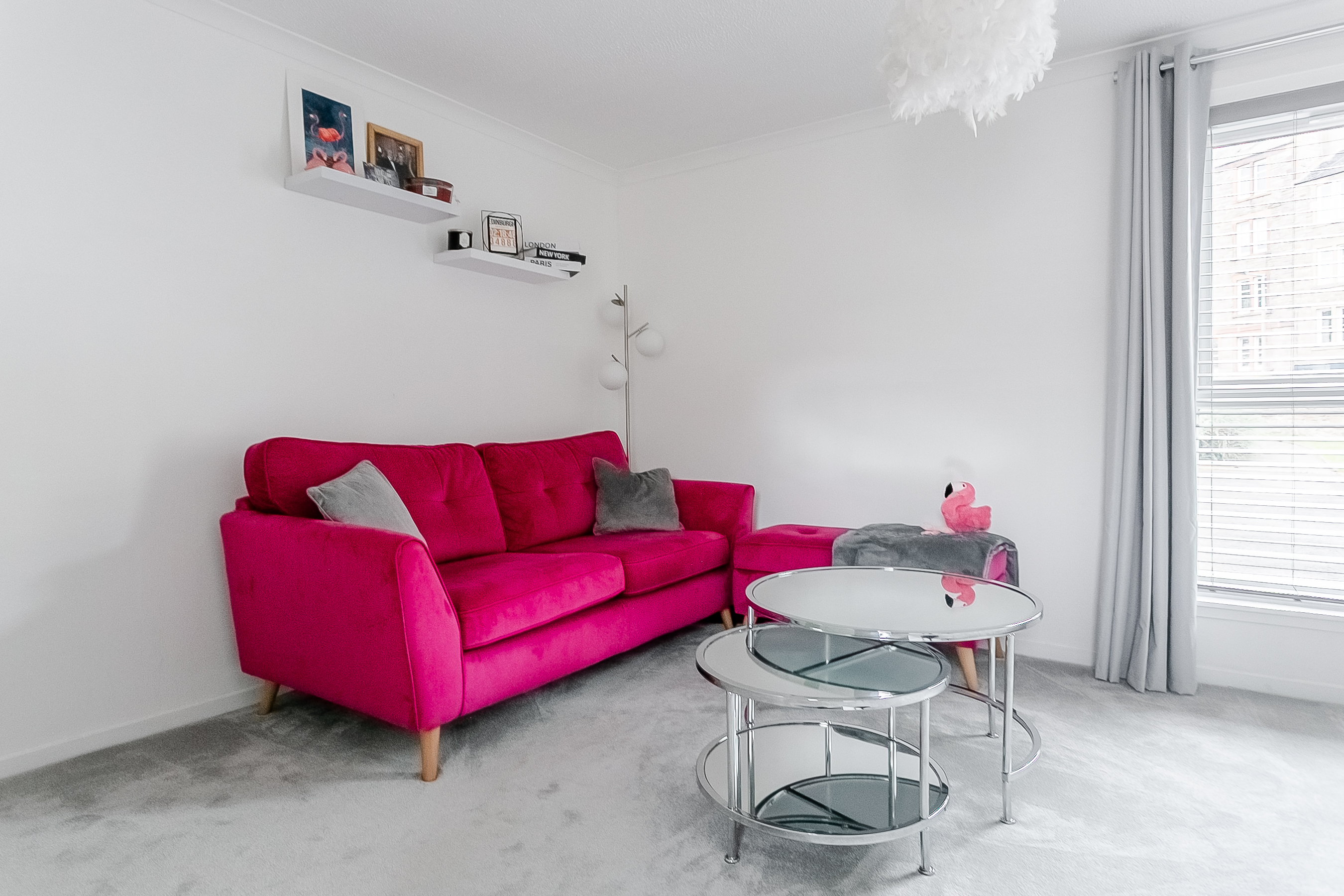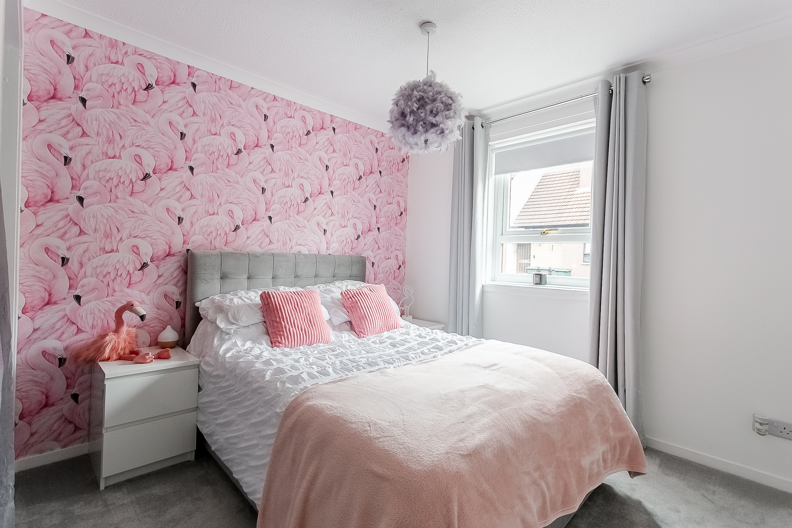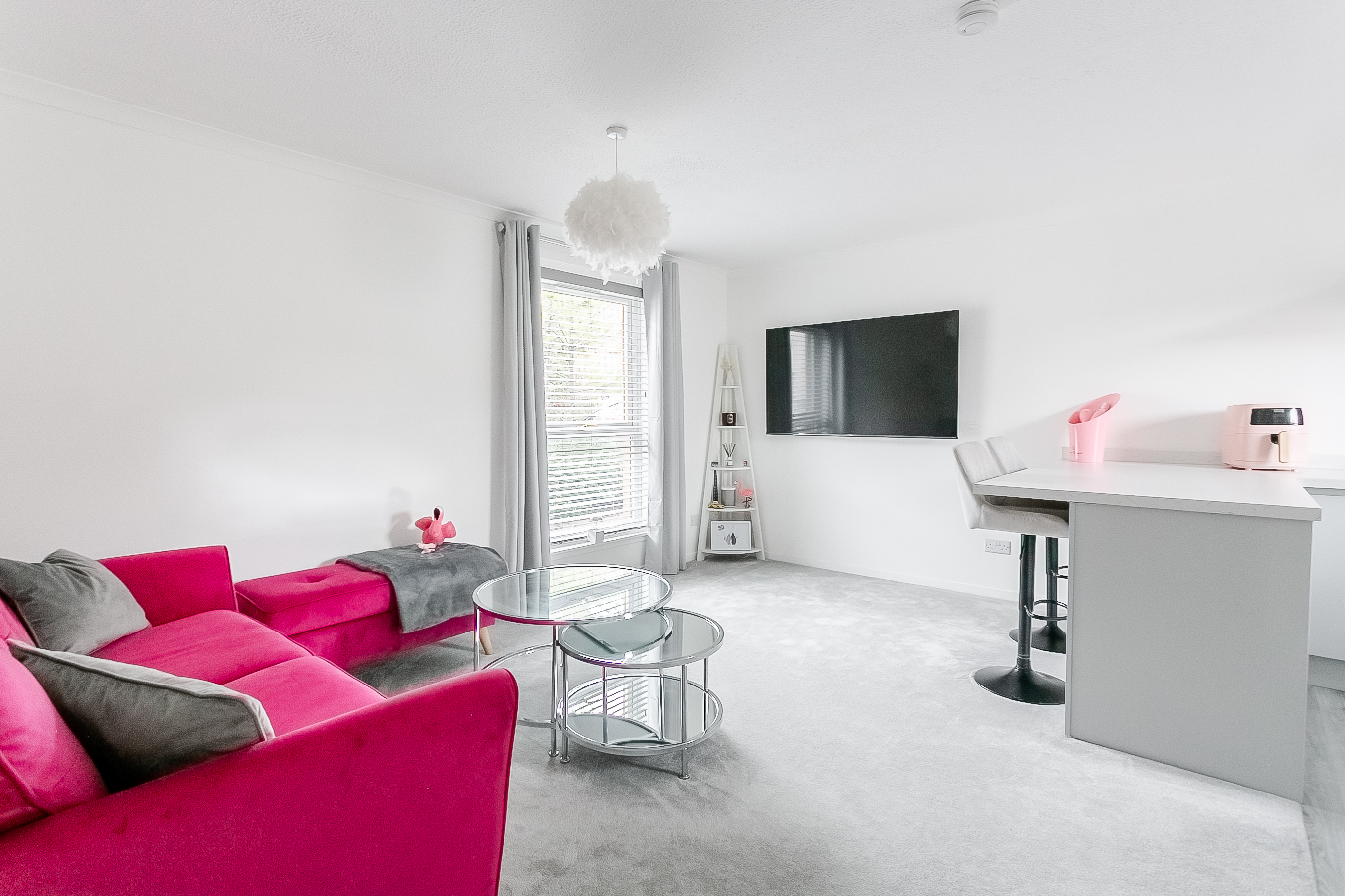 The welcoming entrance hall provides access to all rooms throughout the property, setting the tone for this well-presented home. The bright and spacious living area features soft carpeted flooring, a central light fitting, a wall-mounted TV point, and ample space for both lounge and dining furniture.