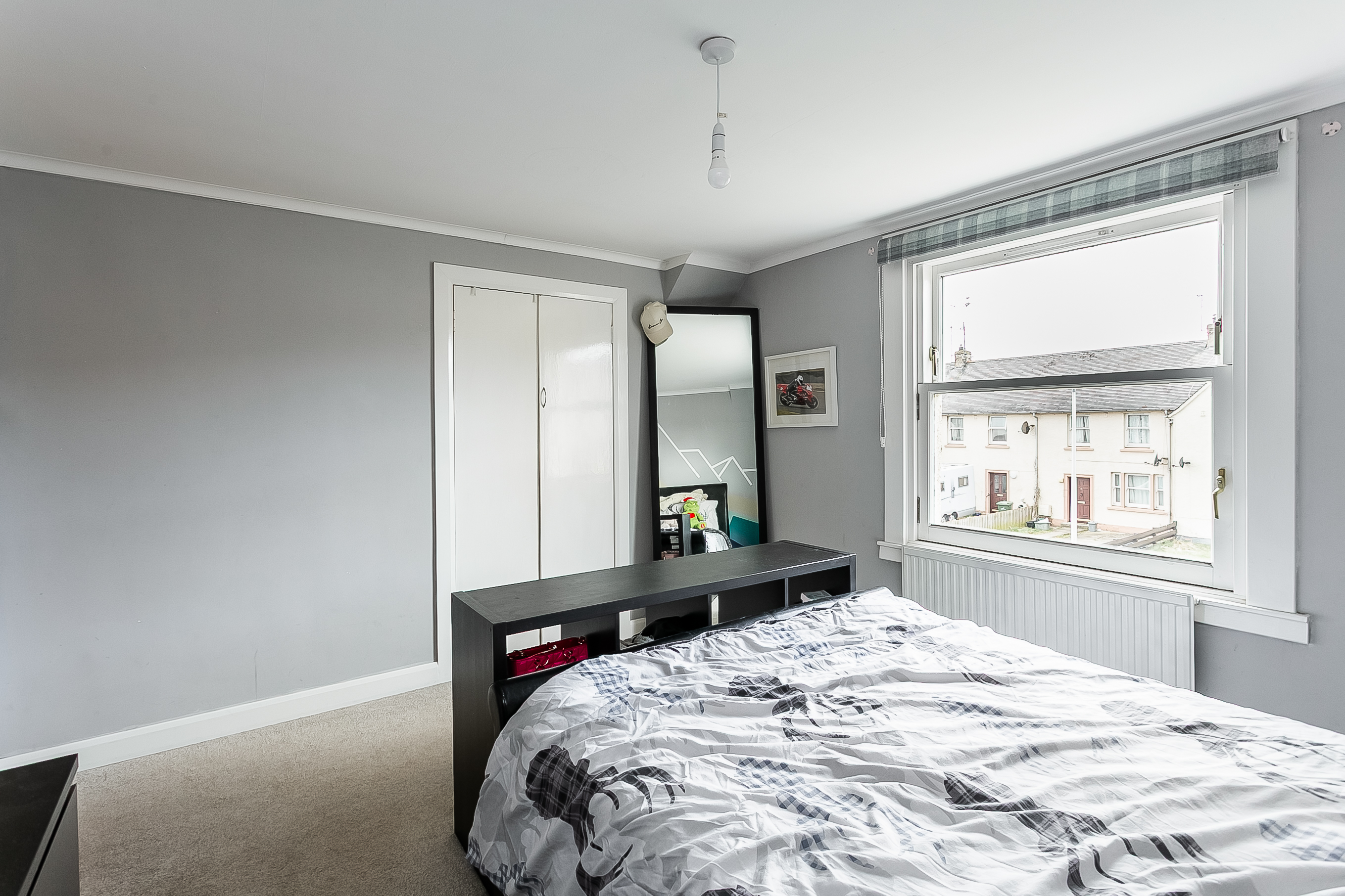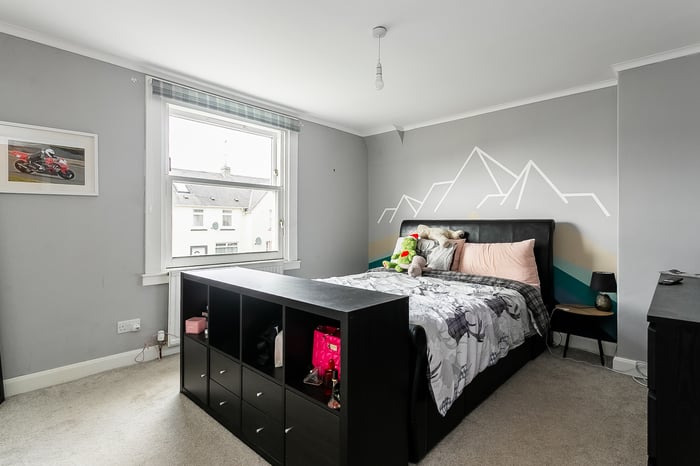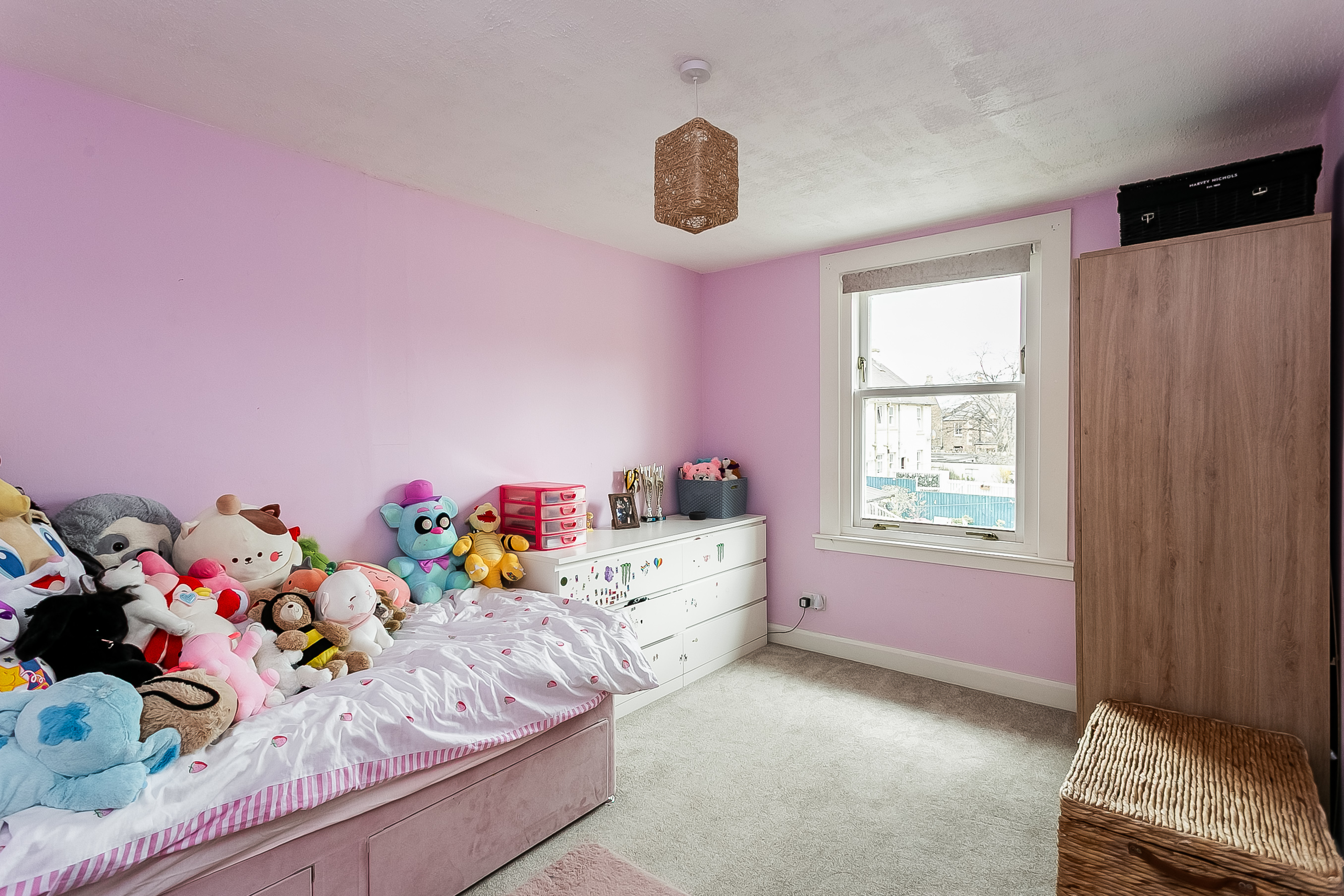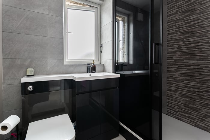 The principal bedroom is particularly spacious and features a built-in wardrobe. Completing the accommodation is a contemporary shower room, fitted with a modern suite including a large cubicle with a rainfall shower, stylish tiled splashbacks, and a ladder-style radiator.