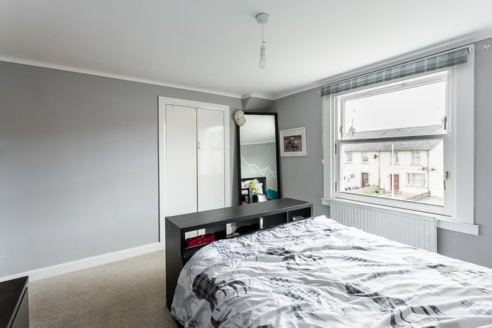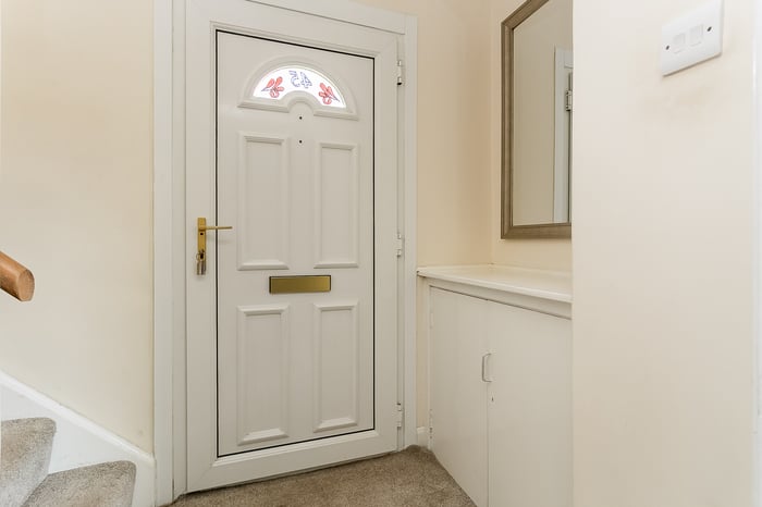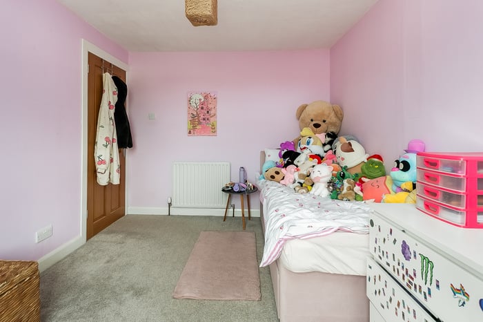 The space comfortably accommodates dining furniture, benefits from understair storage, and provides direct access to the garden. Upstairs, there are two well-proportioned and well-presented bedrooms, both with carpeted flooring.