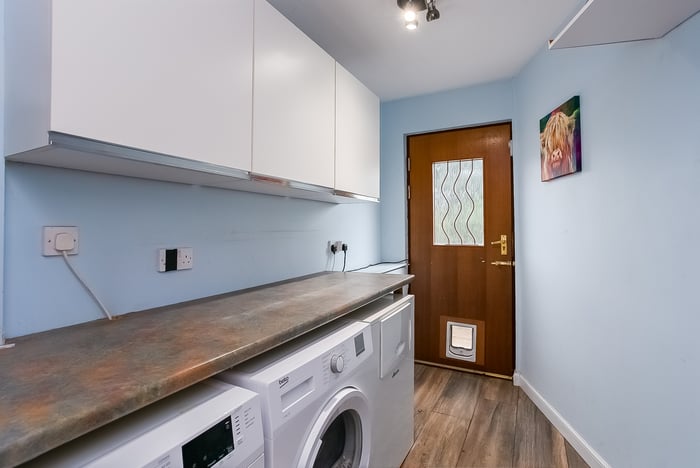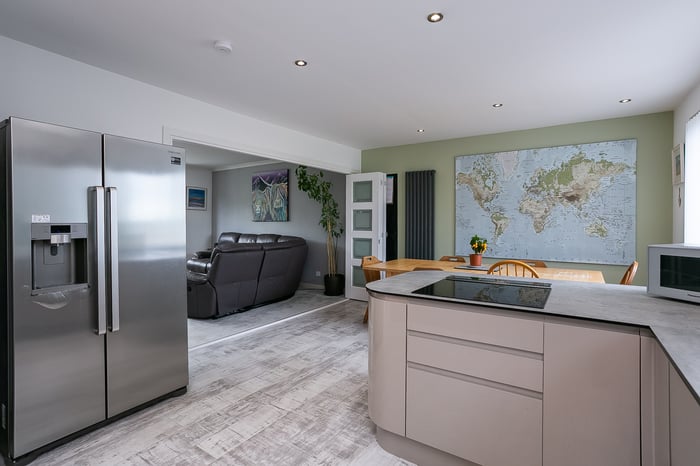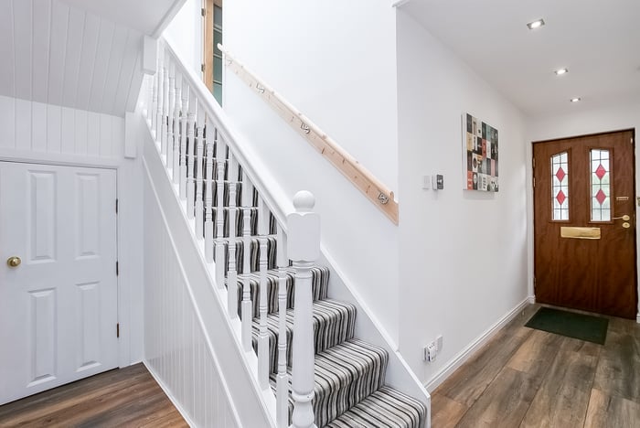 Tastefully presented and spacious, four-bedroom, detached family home, with gardens and a garage. Located in a highly desirable and rarely available cul-de-sac, adjacent to the race and golf courses of Musselburgh, East Lothian. A welcoming entrance hall, with generous storage, is finished with light, neutral decor and modern, wood-effect flooring.