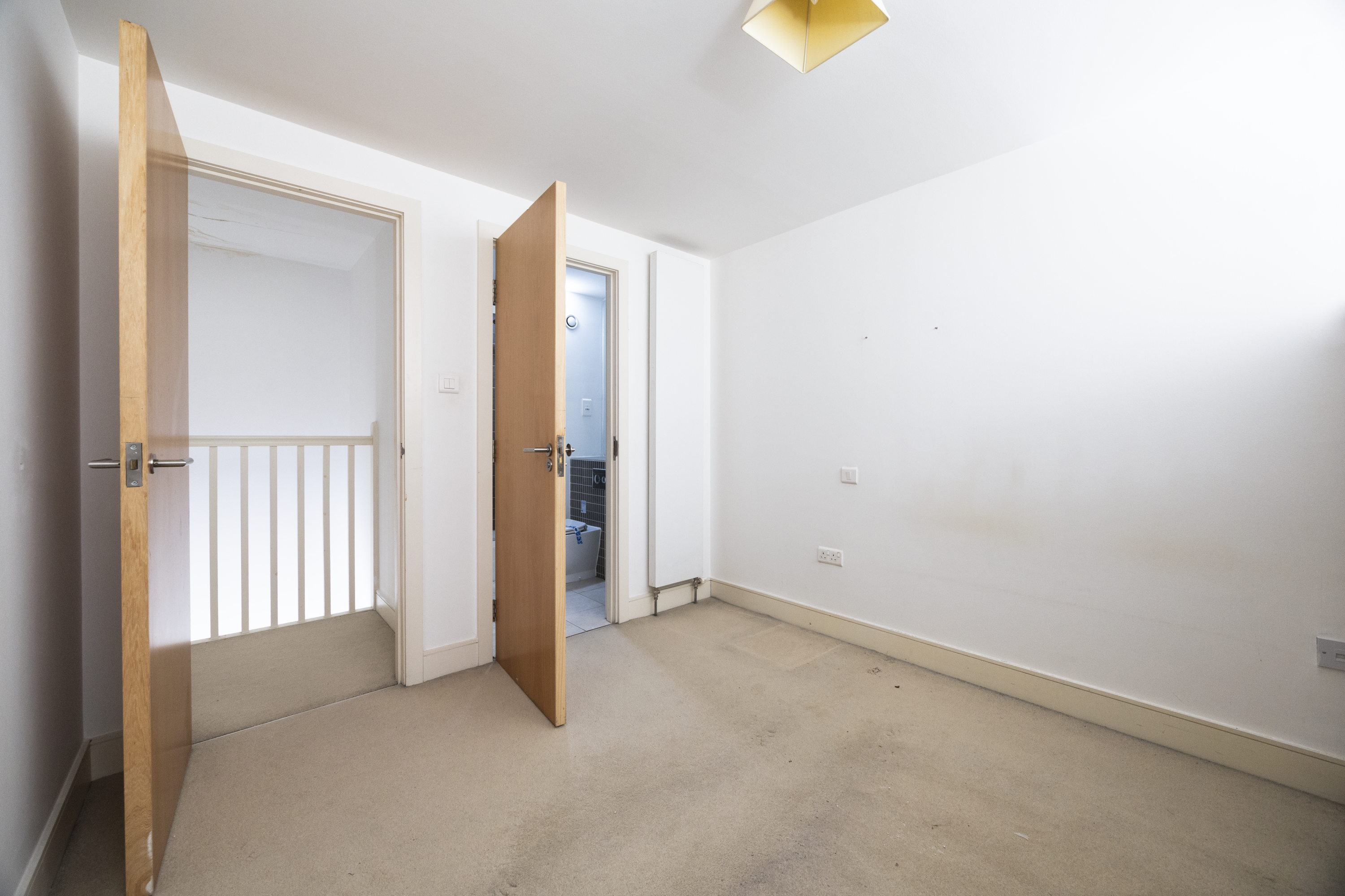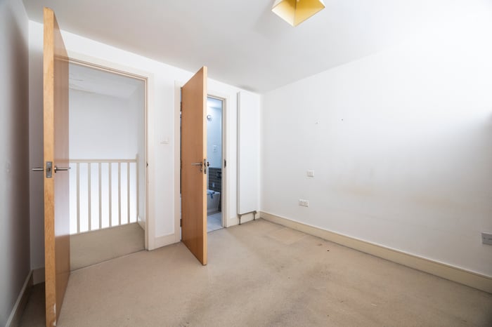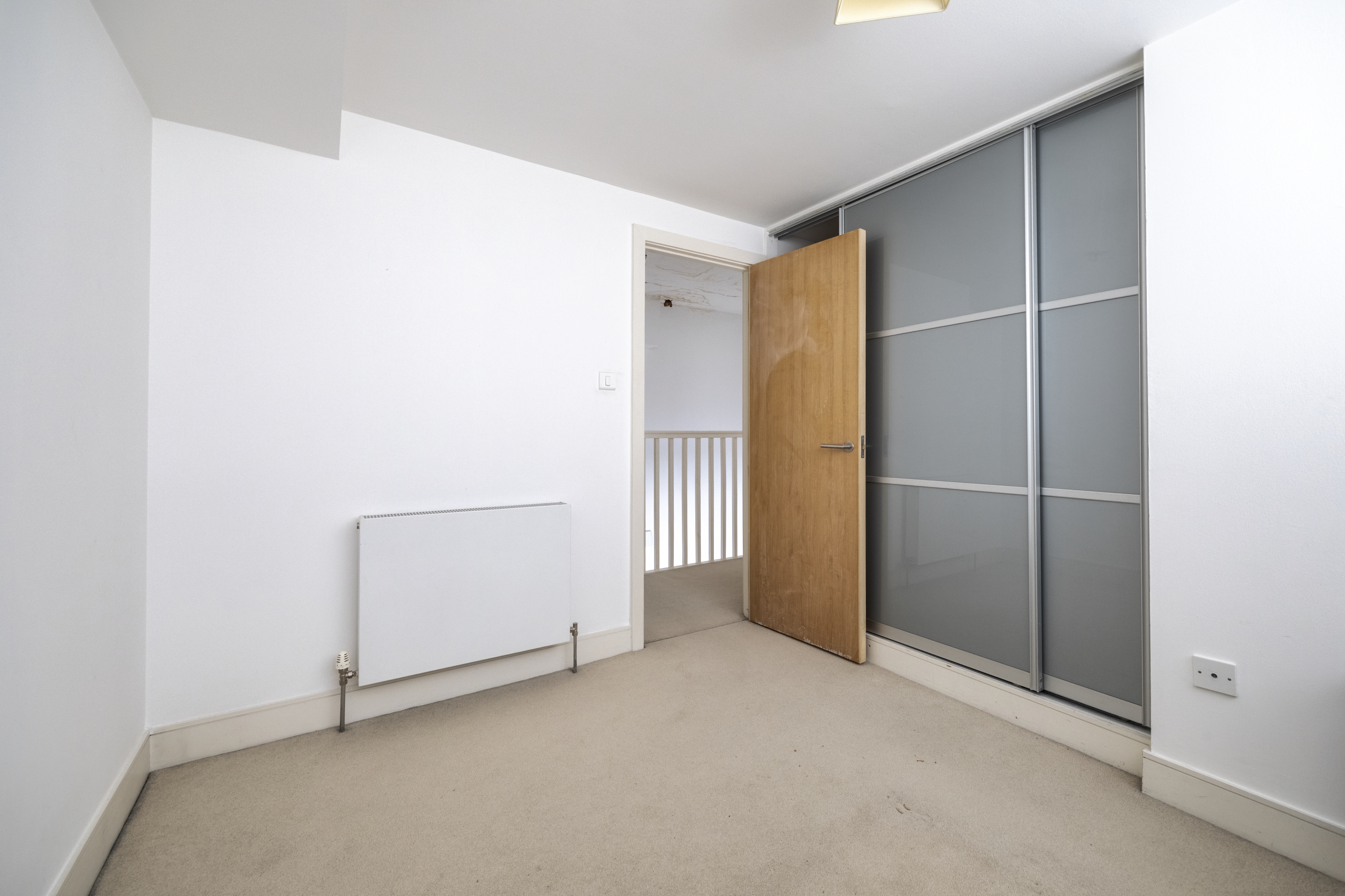 At the front of the property, the fitted kitchen offers ample countertop space along with room for additional appliances. Upstairs, the continuous carpeting provides access to bedrooms one and two, each featuring built-in cupboards ideal for storage.