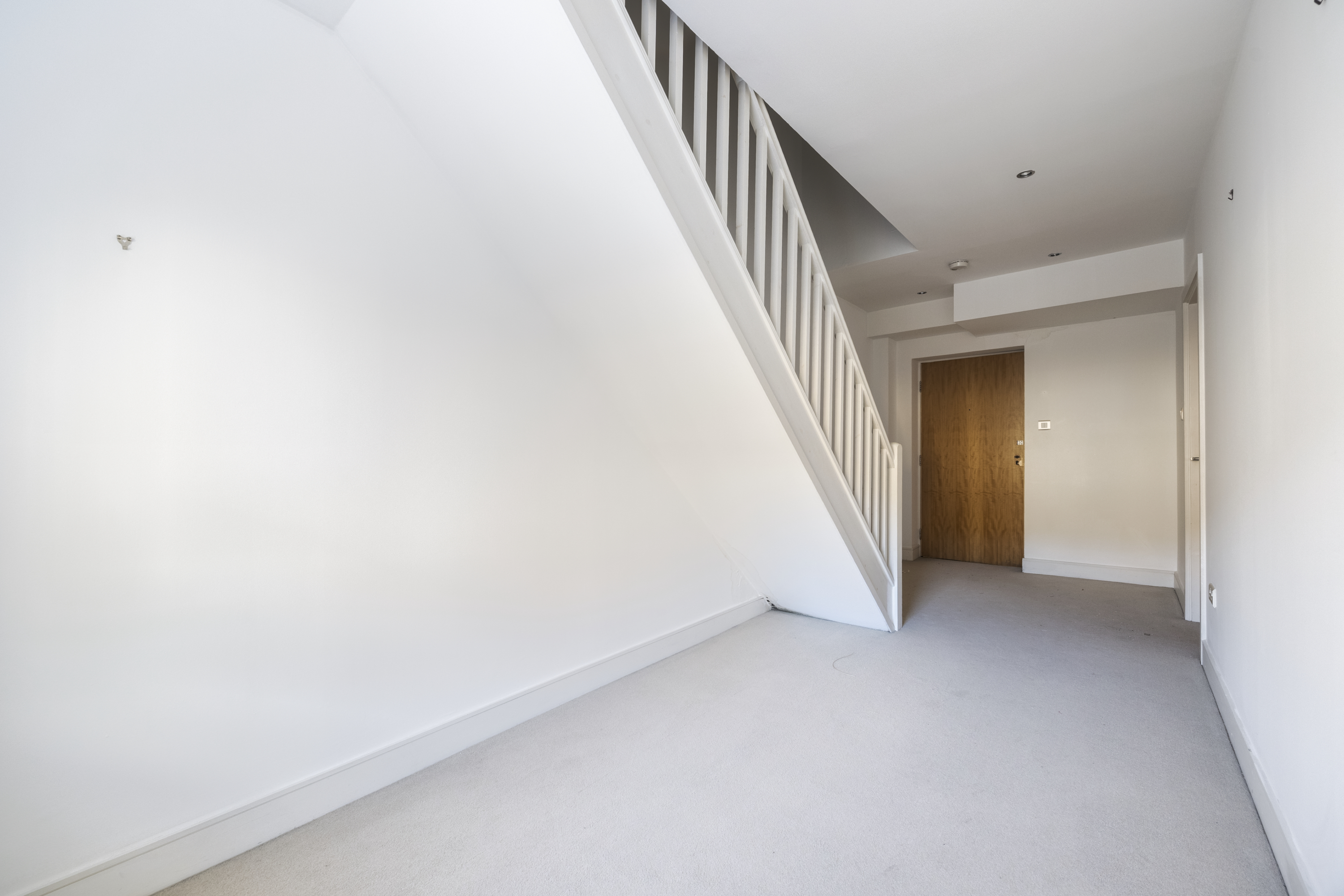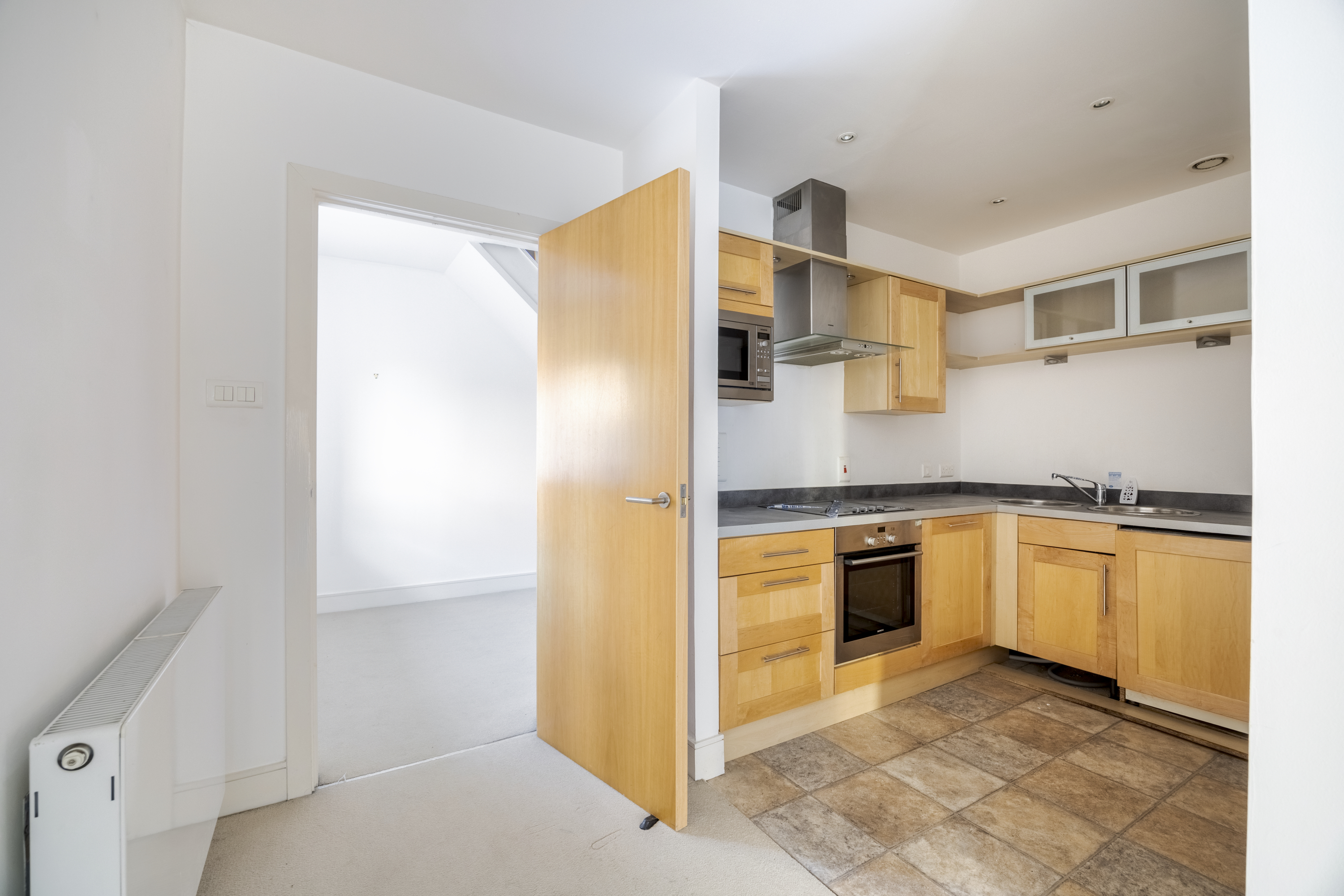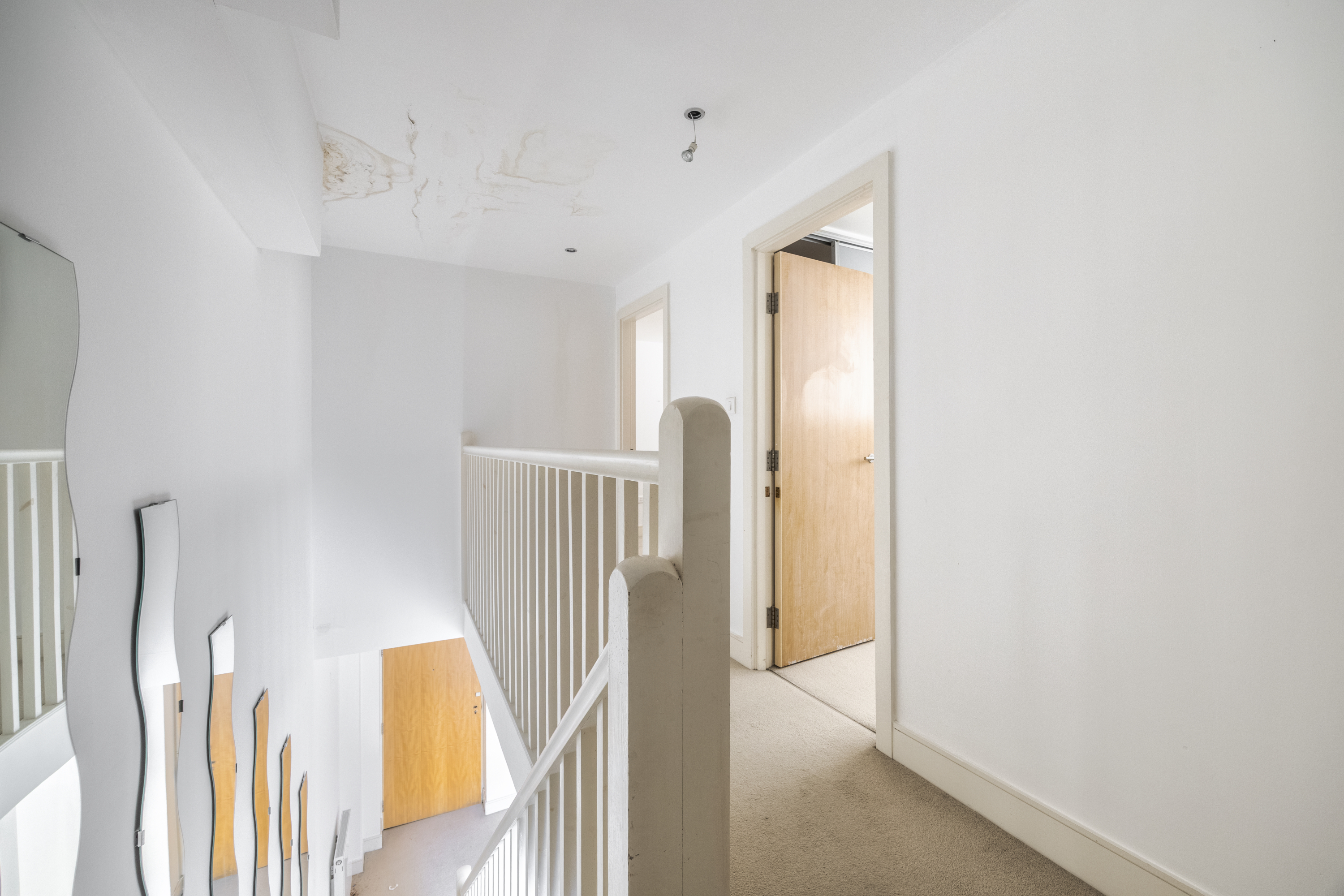 At the front of the property, the fitted kitchen offers ample countertop space along with room for additional appliances. Upstairs, the continuous carpeting provides access to bedrooms one and two, each featuring built-in cupboards ideal for storage.