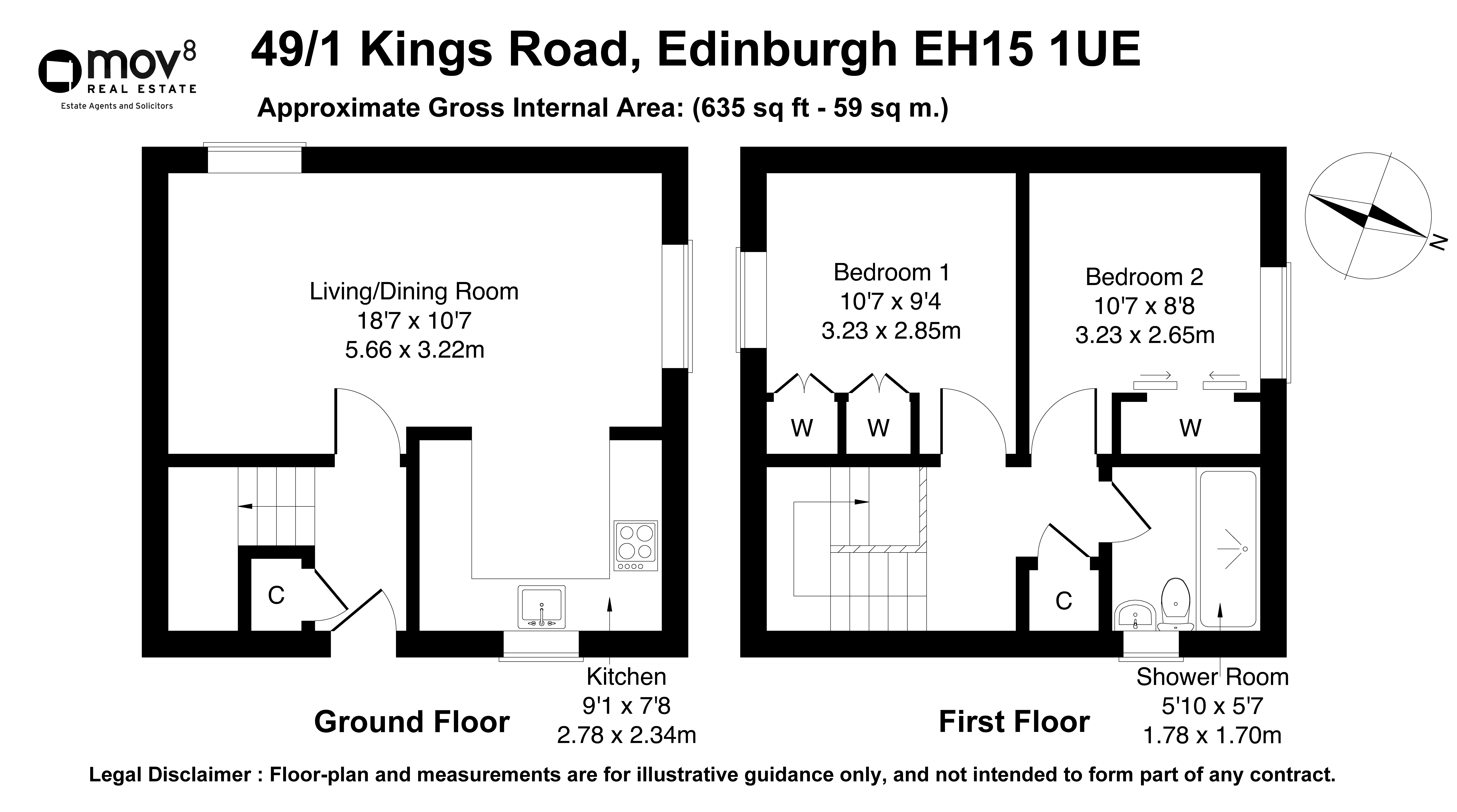 • Comprises an entrance hall, living/dining room, kitchen, upper hall, two double bedrooms, and a shower room.