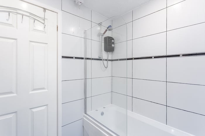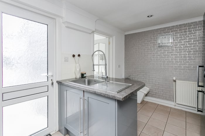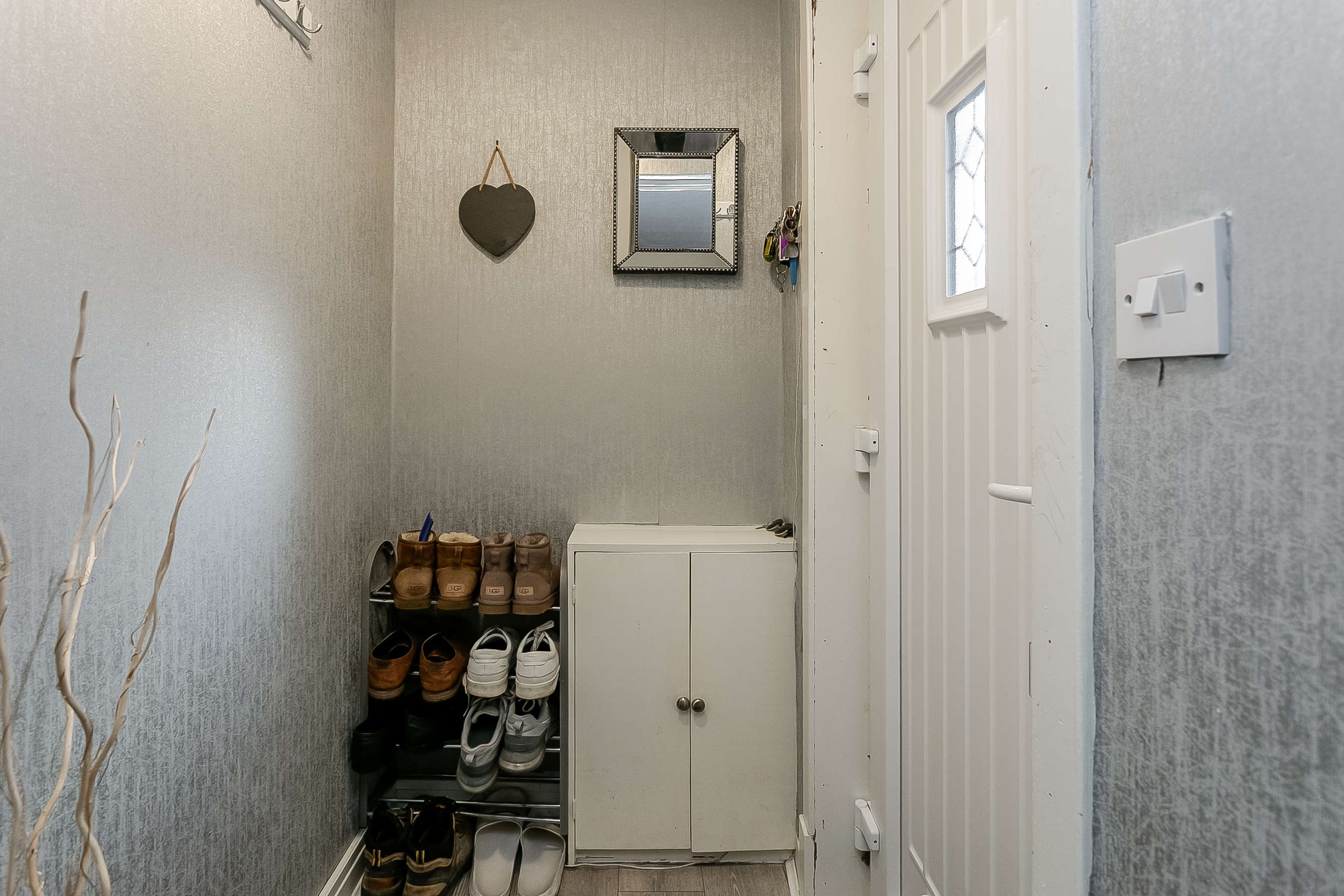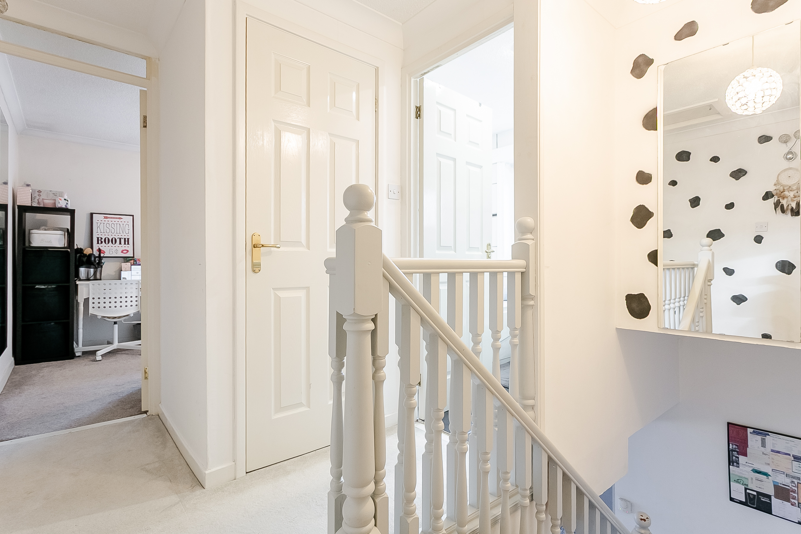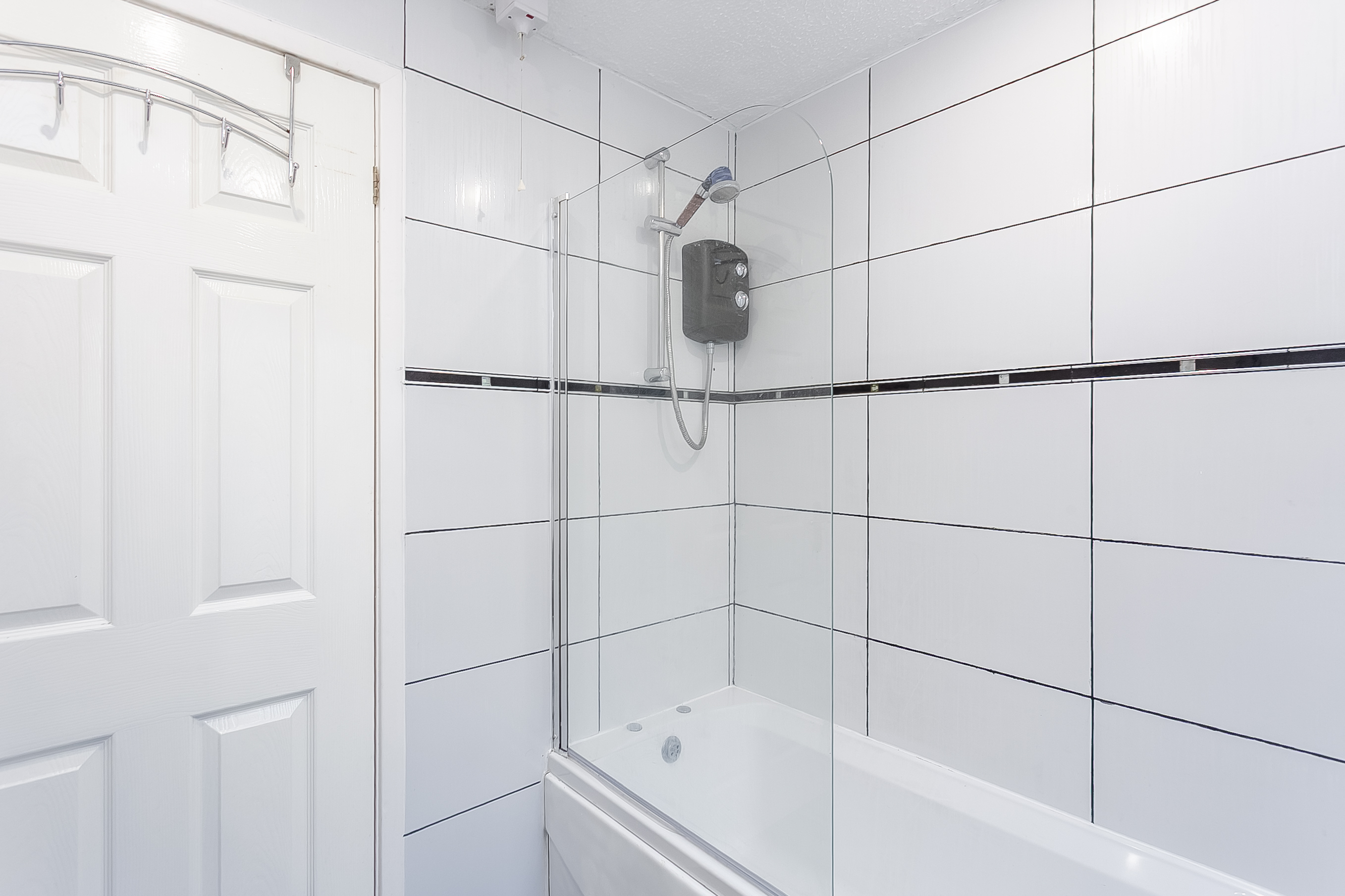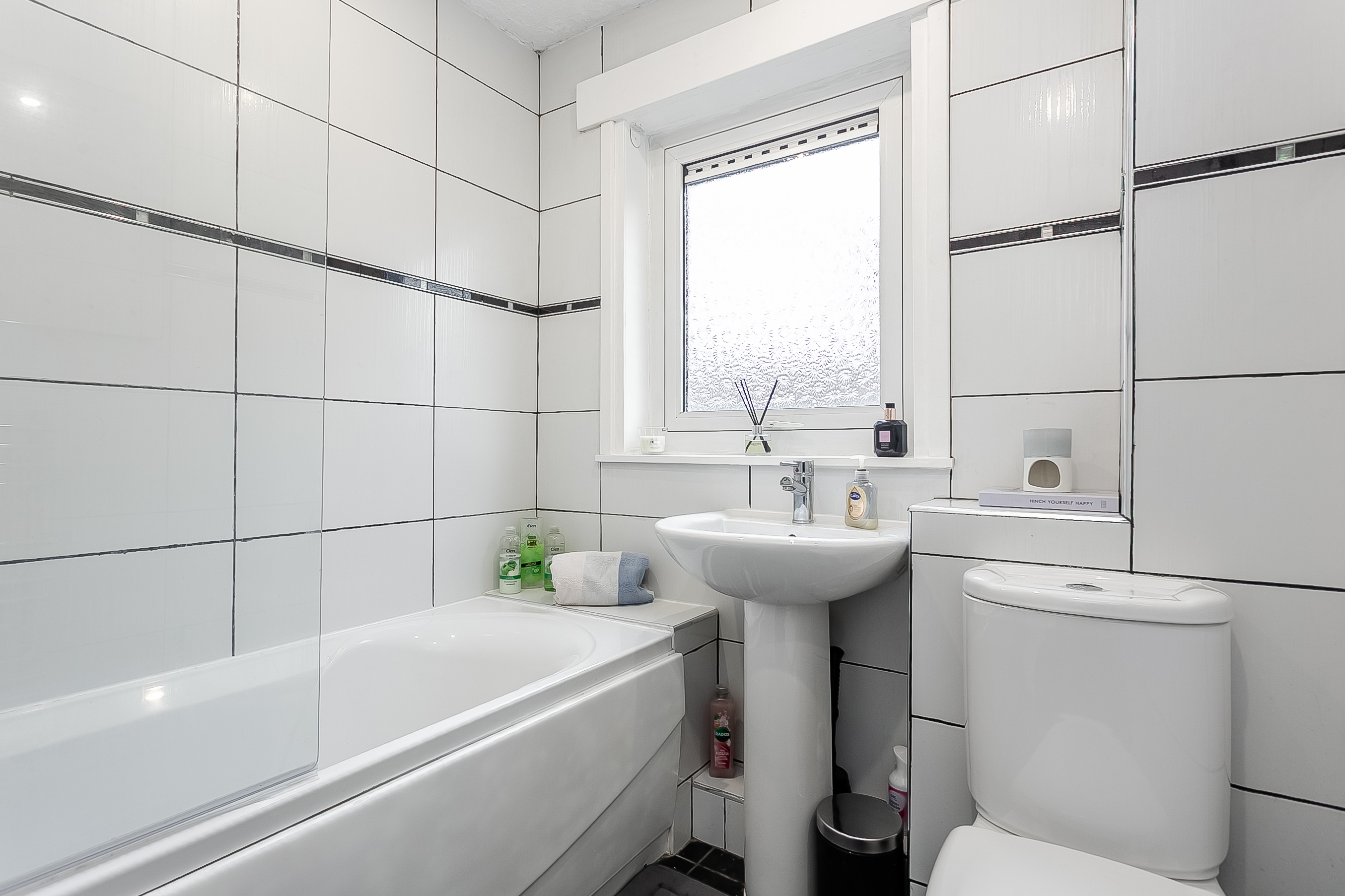 Upstairs, the carpeted landing provides access to bedrooms one and two, both finished with carpeted flooring, light décor, and space for freestanding furniture, with bedroom one also benefiting from a built-in cupboard for additional storage. Completing this family home is the family bathroom, comprising a three-piece suite with a shower over the bath and a ladder-style radiator.