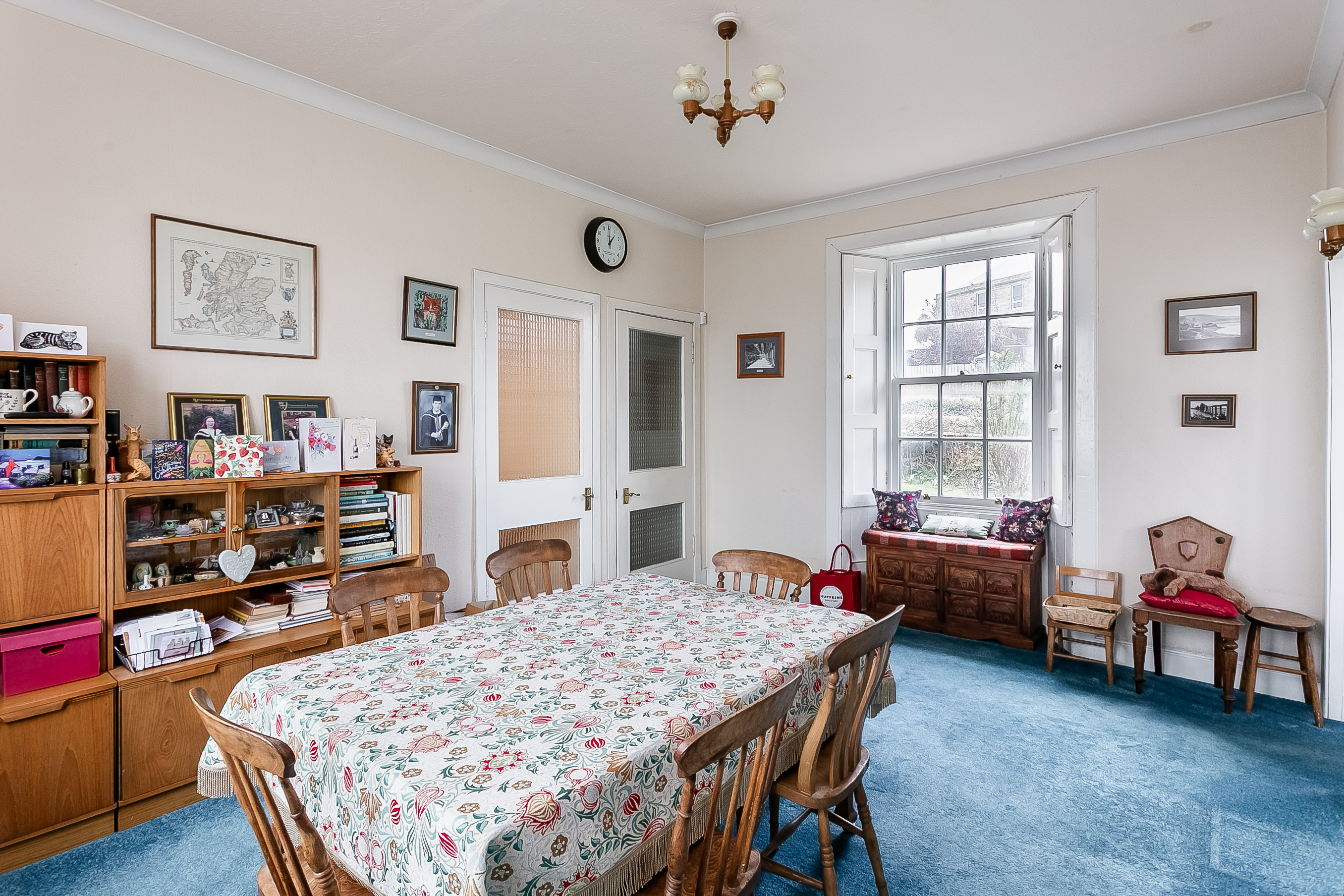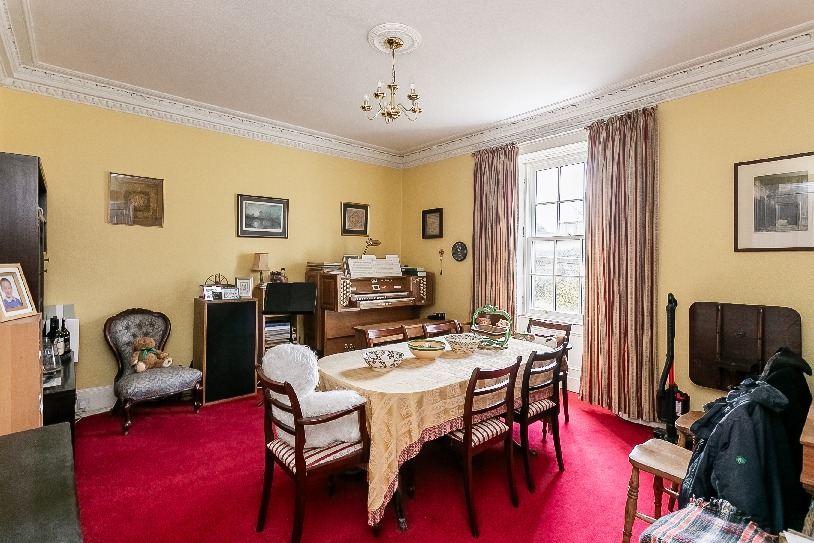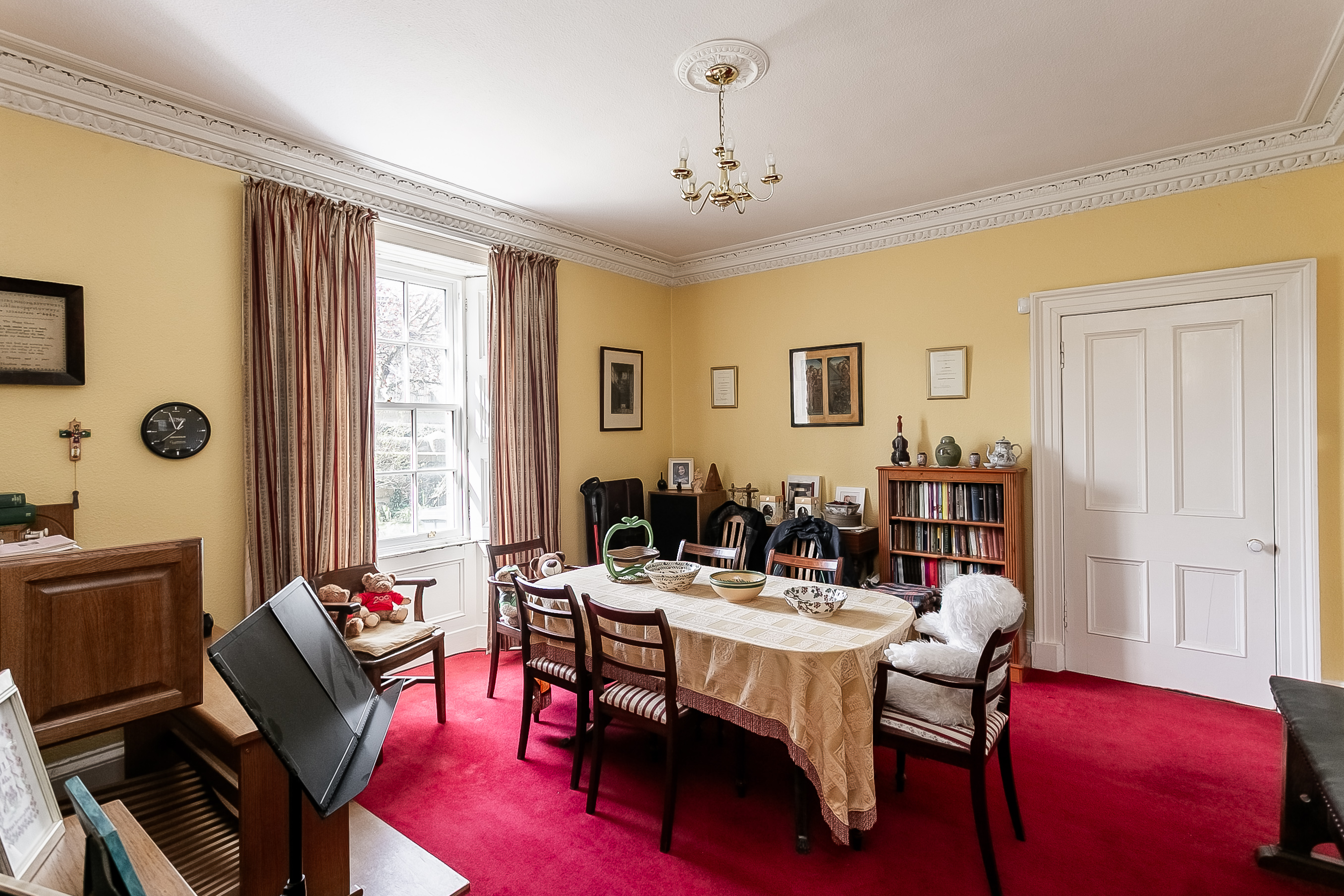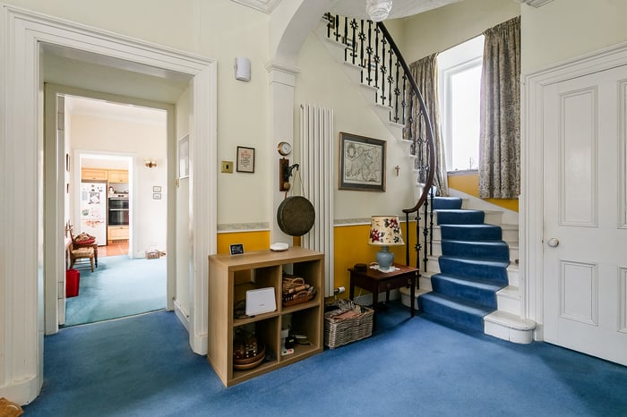 Set over three levels, the property combines classic period architecture with generous, flexible accommodation suited to modern family living. The ground floor is entered via a welcoming clockroom, opening onto the reception hall, which provides access throughout the ground-floor accommodation, along with a convenient WC and staircase to the upper level.