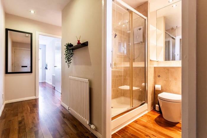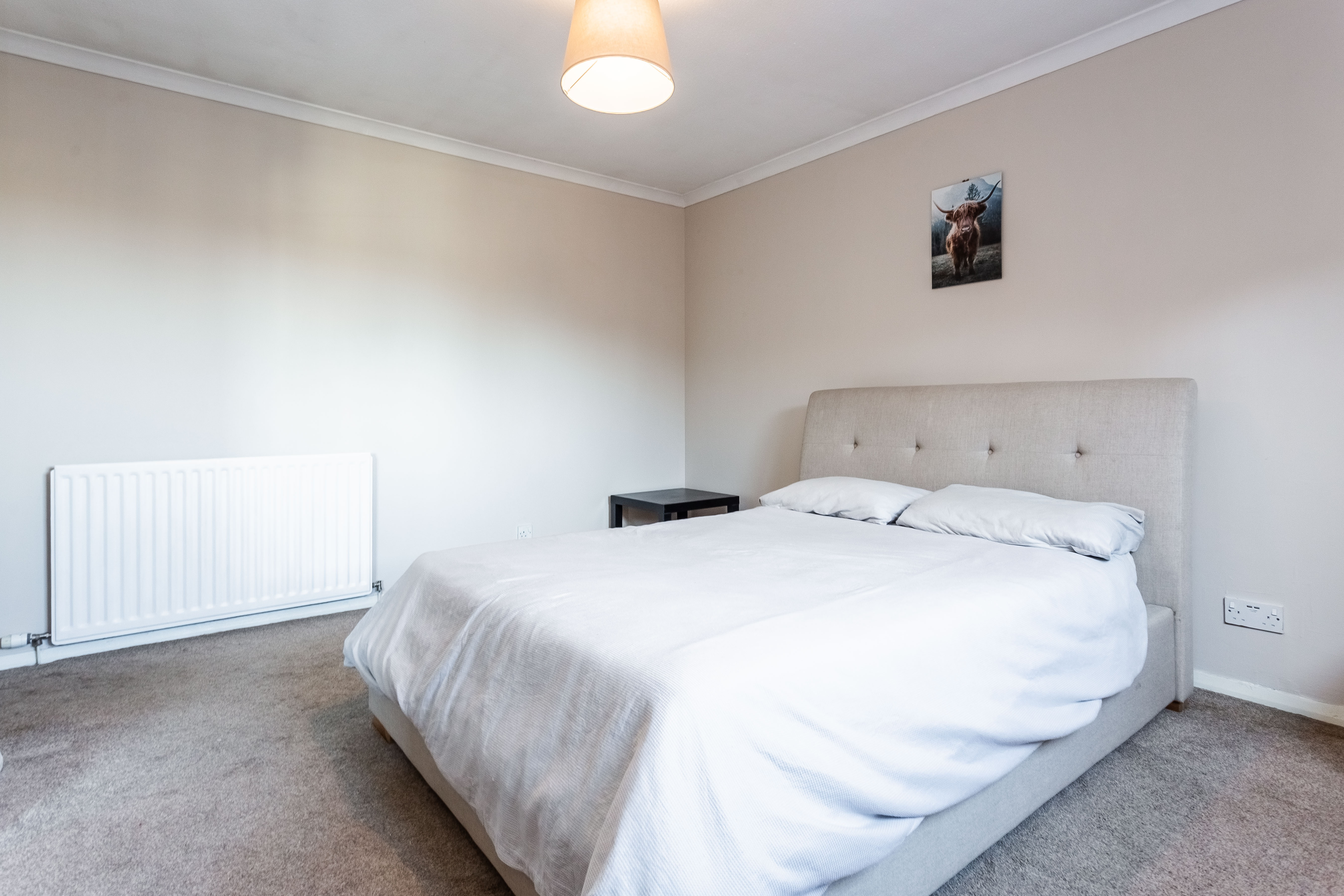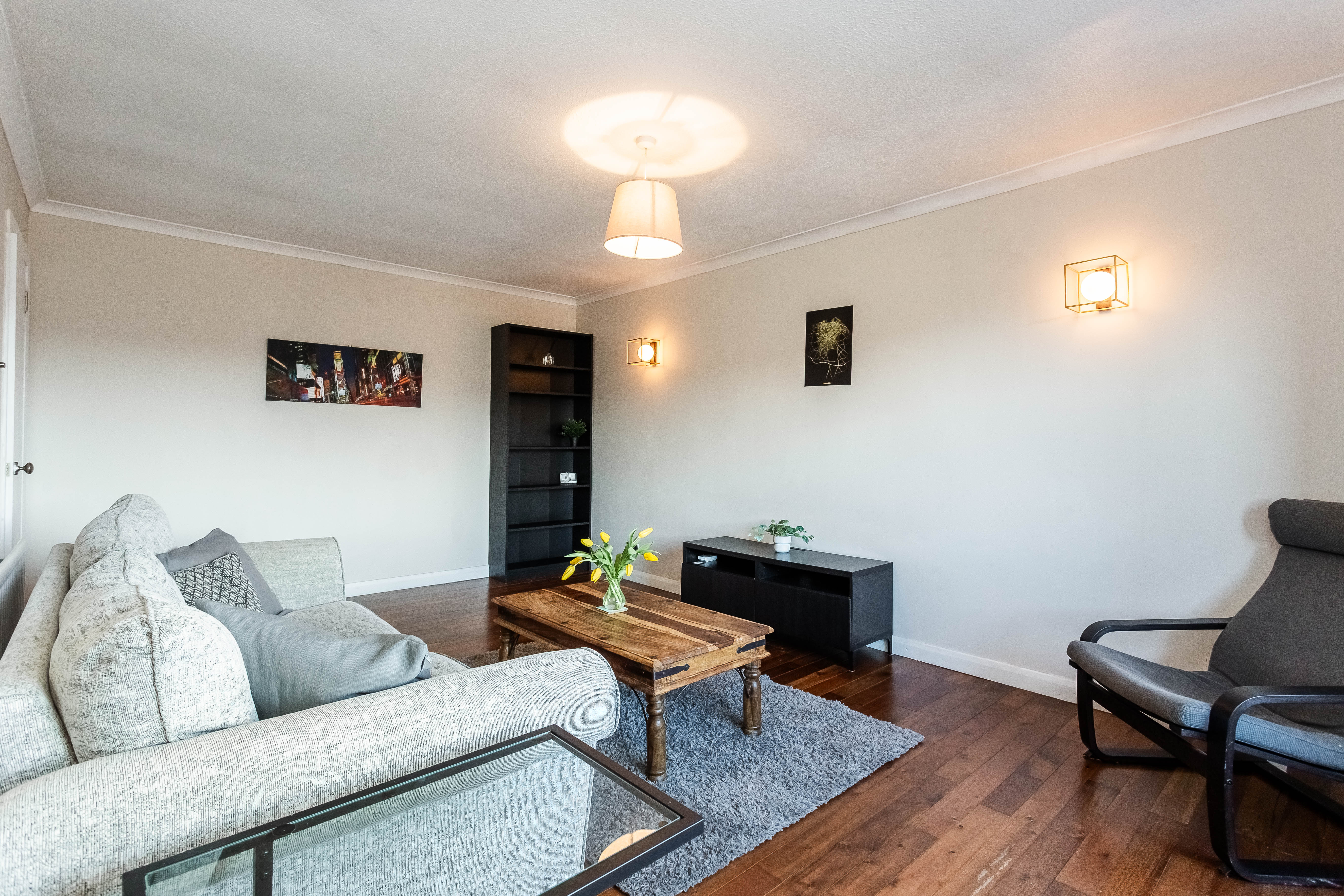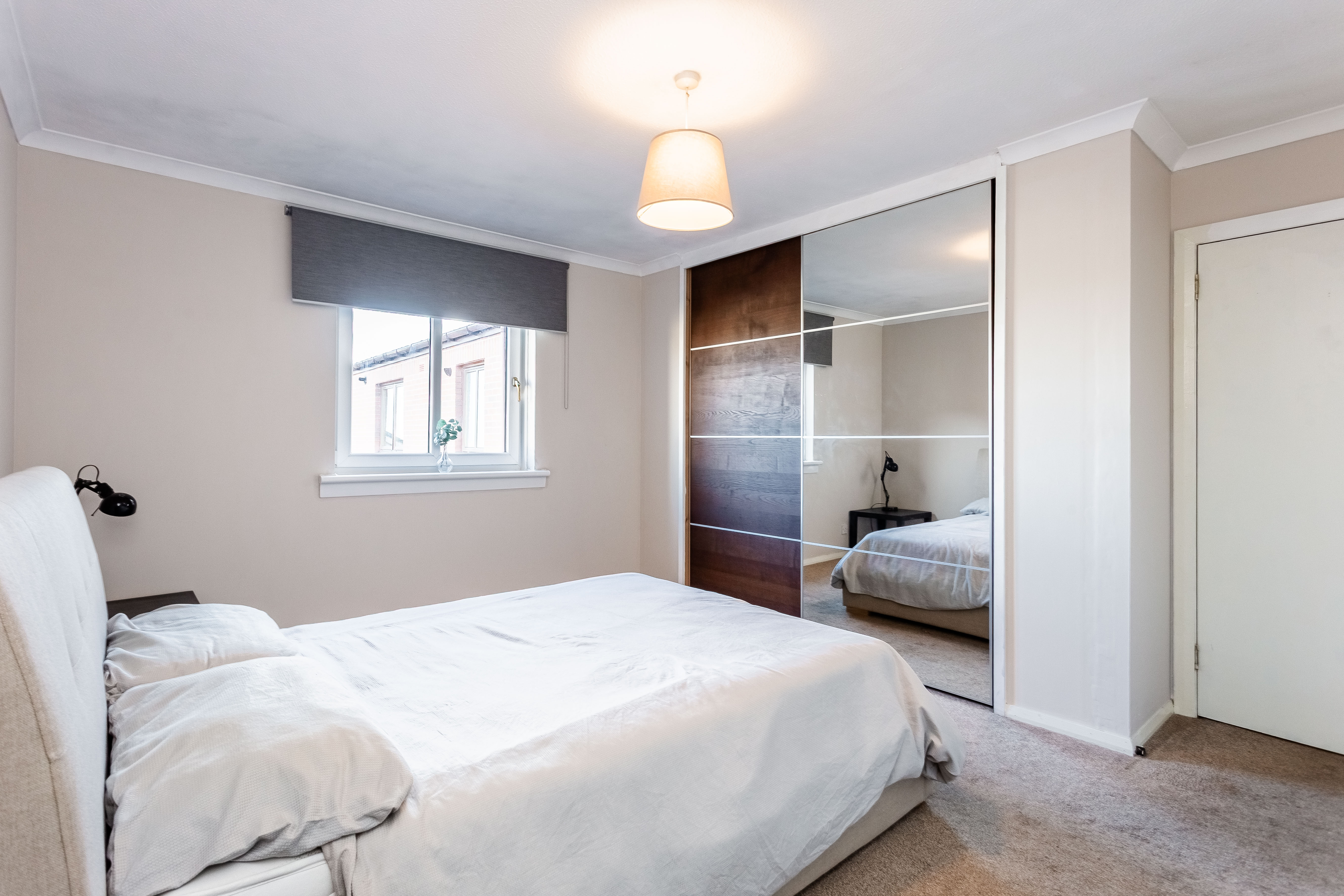 There is ample room for additional furniture alongside a generous built-in wardrobe with mirrored sliding doors, which enhances both storage and the sense of space. Completing the property is a modern fitted shower room, finished with hardwood flooring, a tiled splashback surround and sleek spotlighting, offering a clean and contemporary feel.