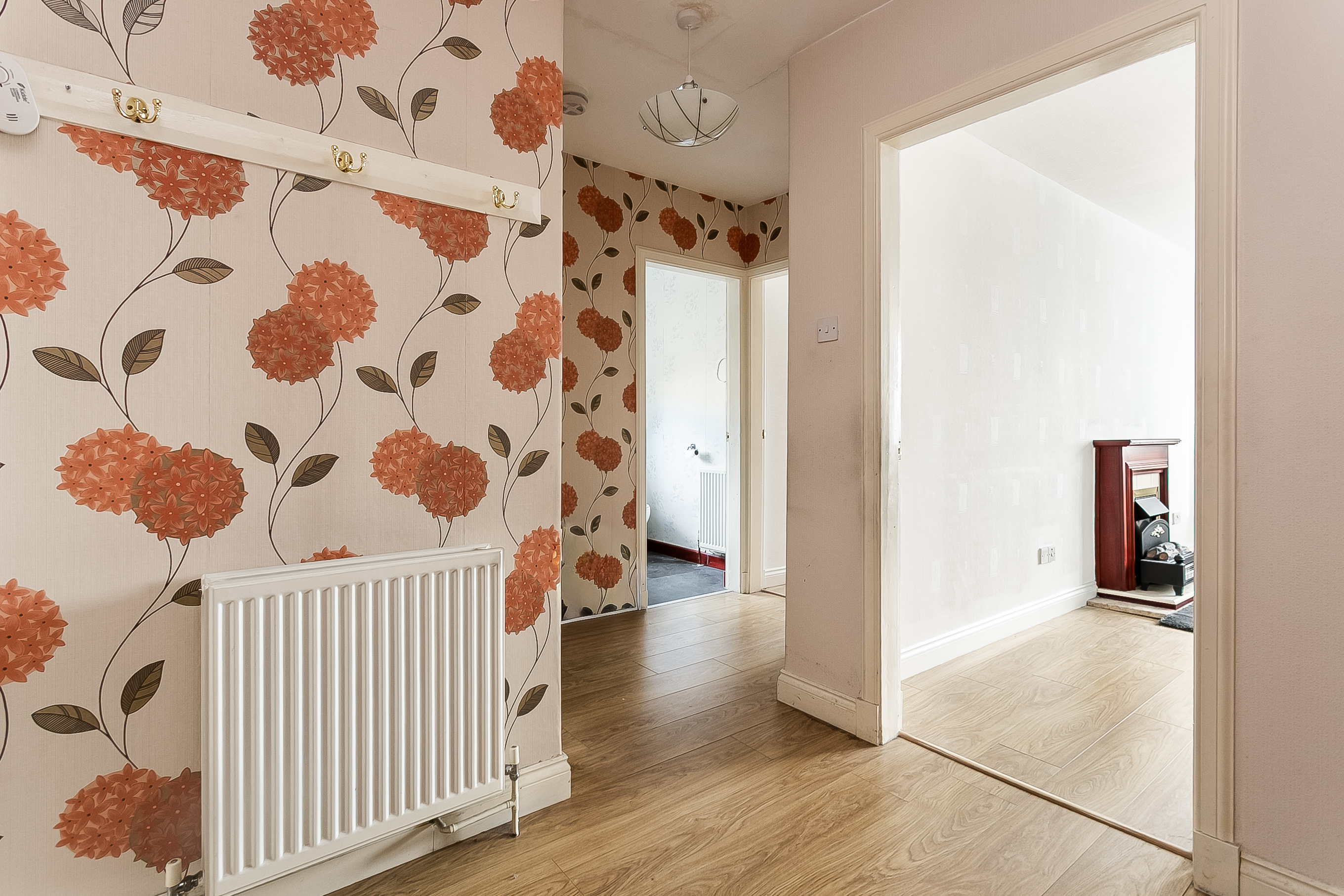 Light and well-presented, one-bedroom, dual-aspect, first-floor flat, forming part of an established residential development. Conveniently located on a quiet side street in the heart of Bonnyrigg, Midlothian. A welcoming entrance hall affords access throughout the property, including two convenient storage cupboards.
