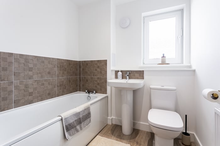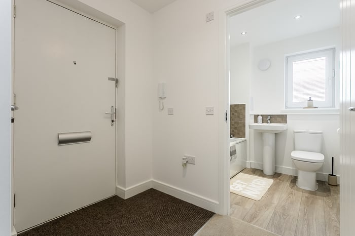 Completing the accommodation, the contemporary family-sized bathroom is fitted with a modern three-piece suite and attractive tiled splash areas. This appealing home combines modern comfort with a peaceful outlook, making it an ideal choice for first-time buyers, professionals or those seeking a well-connected yet tranquil setting.