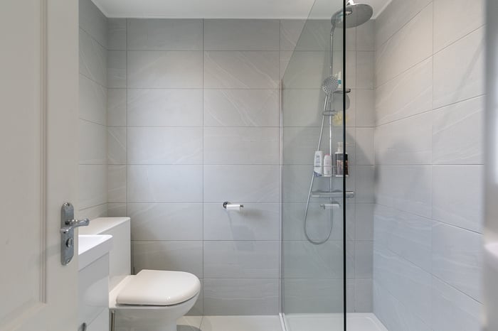To the front is a flexible fourth bedroom or family room, with ample space for freestanding storage, spotlighting and a wall-mount TV point. On the first floor, a master bedroom overlooks the rear garden, and has a built-in wardrobe with mirrored doors, a TV wall-mount point and a stylish en-suite shower room with a walk-in cubicle.