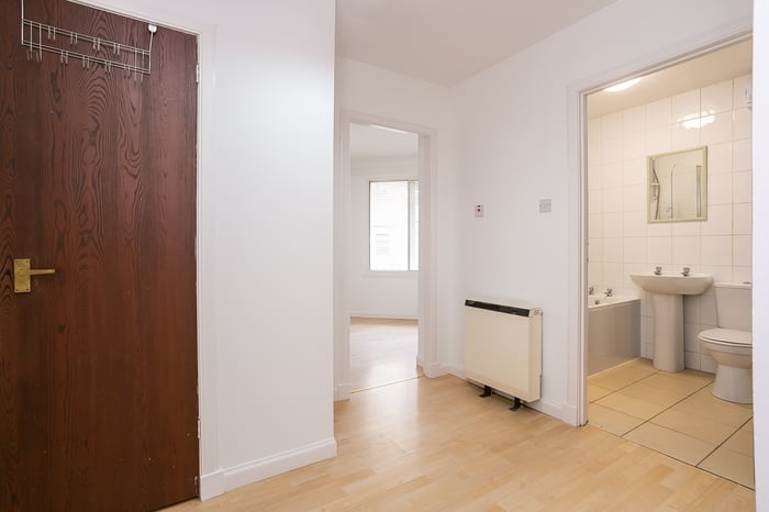 *FIXED £10,000 BELOW HOME REPORT* Light and tastefully presented, one-bedroom, corner-aspect, ground-floor flat, forming part of an established development. Conveniently located in the vibrant Tollcross area of Edinburgh’s city centre. A spacious central entrance hall, with storage, is finished with light, neutral decor and modern, wood-effect flooring, which continues throughout most of the flat.