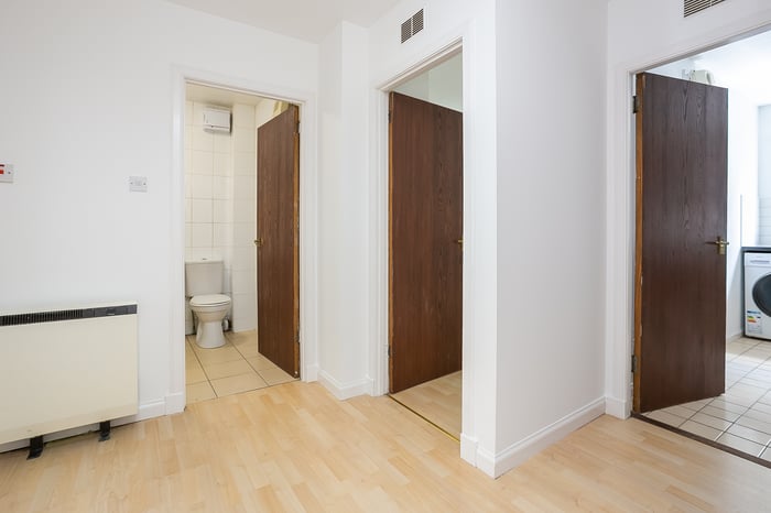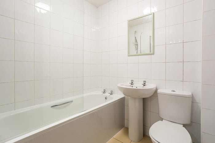 Enjoying a sunny aspect, a double bedroom benefits from good proportions and includes built-in wardrobe storage. Completing the accommodation, a bathroom comprises a three-piece suite, a shower-over-bath and tiled splash walls and flooring.