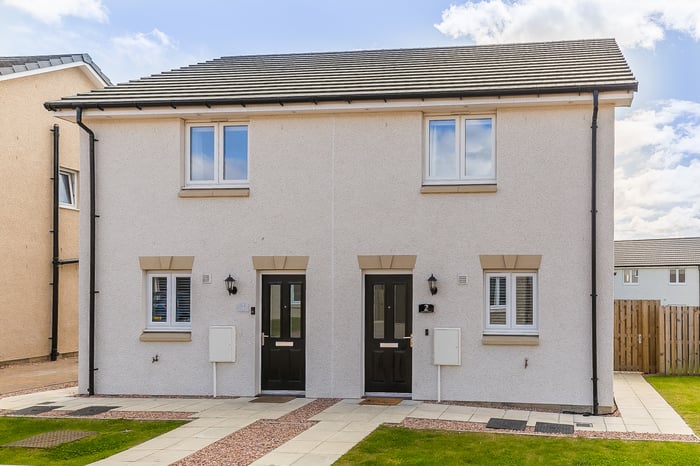 Beautifully presented, two-bedroom, semi-detached home, with gardens and an allocated parking space. Located in a modern, factored development in the highly sought-after, residential area of Monifieth, Angus, east of Dundee city centre. A welcoming hallway, with storage and a WC, is finished with light, neutral decor which continues throughout the home.