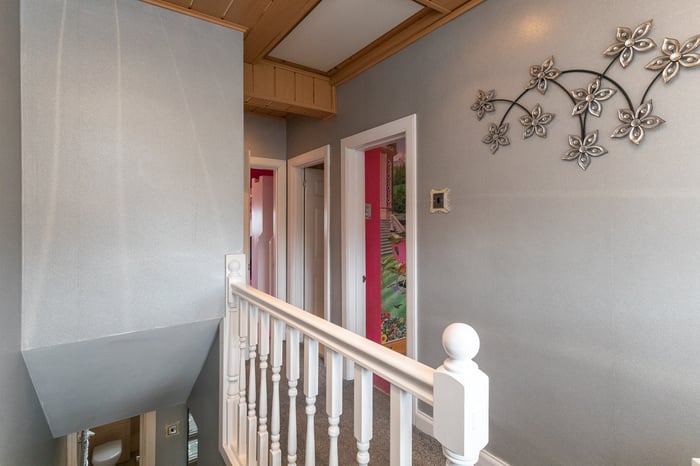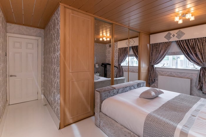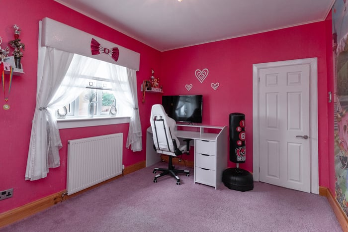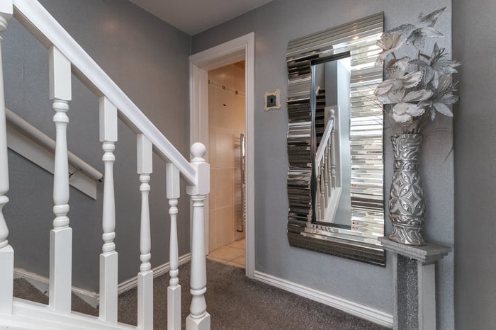 On the upper hall, bedroom one features carpeted flooring and a built-in wardrobe with sliding doors; two further double bedrooms are set to the rear, similarly well finished with bedroom two also featuring a built-in wardrobe. Completing the accommodation, the fully tiled shower room is set internally off the hall.