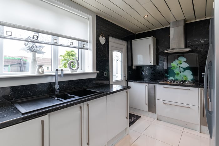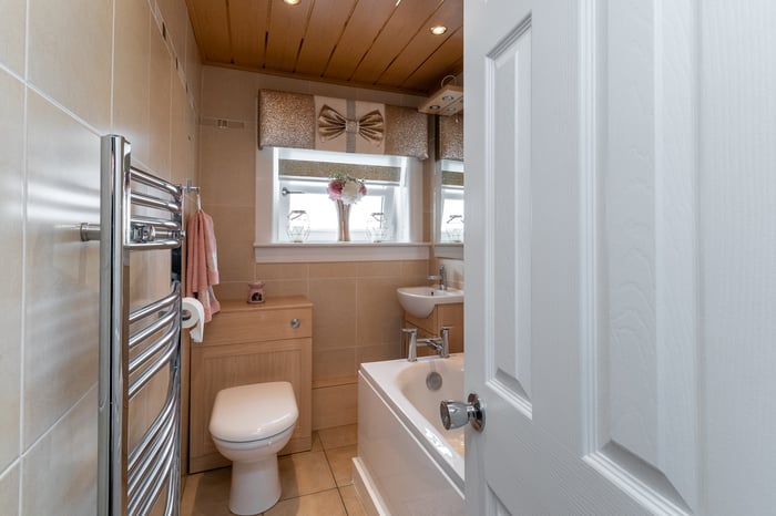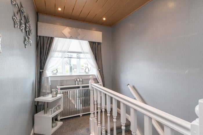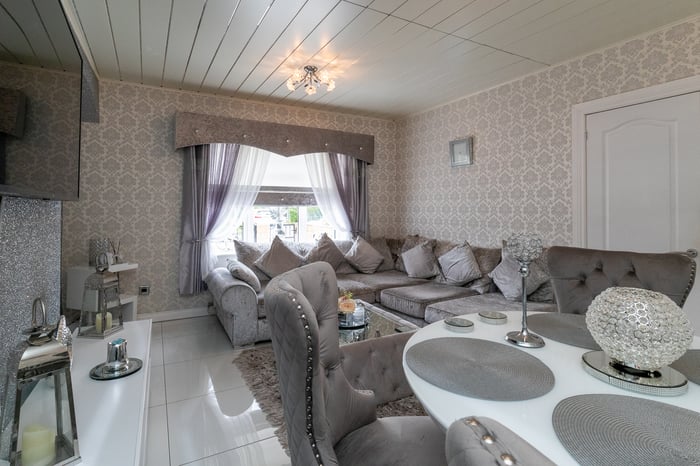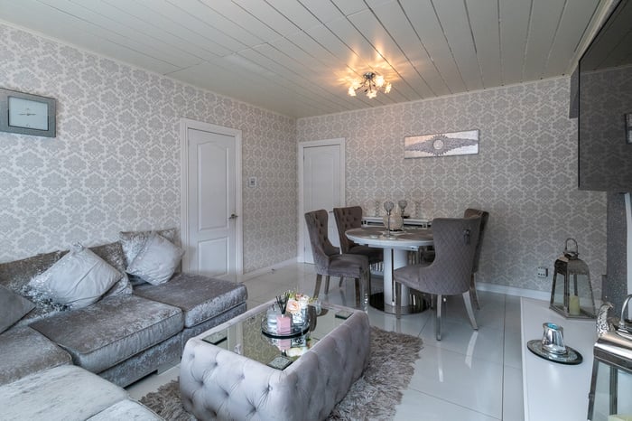 Bright and well presented, three bedroom, mid-terrace with gardens and a driveway. Set in a residential street in the Priestfield area of Glasgow, southwest of the city centre.