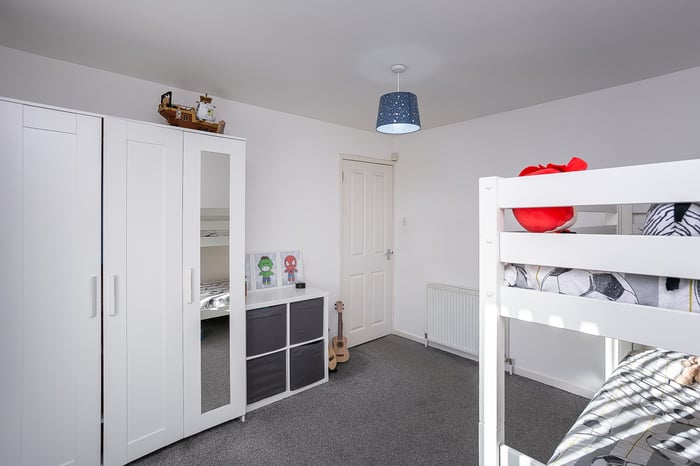 There is ample room for freestanding bedroom furniture and storage. Completing the accommodation, a bathroom comprises a three-piece suite, a shower-over-bath, vanity storage and panel splash walls.