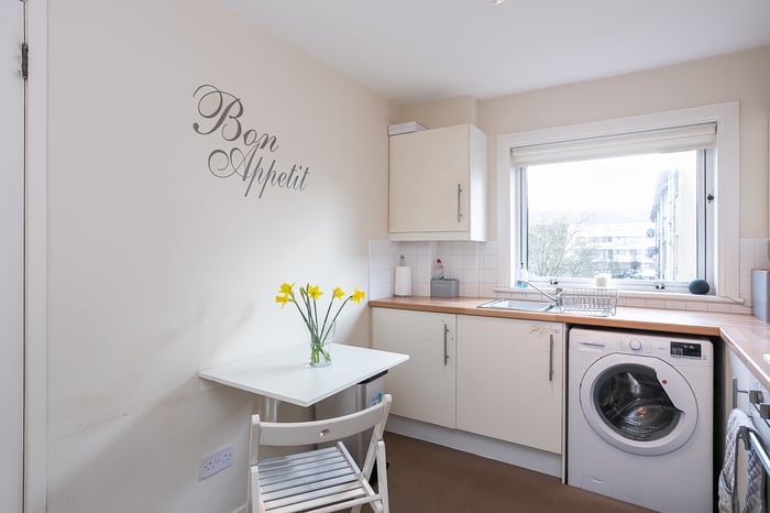Beautifully presented, two-bedroom, second-floor flat, forming part of an established residential development. Conveniently located in the Duddingston area, to the east of Edinburgh city centre. A bright entrance hall, with storage, is finished with light, neutral decor and modern, wood effect flooring and leads towards a living room, enjoying lovely, open views.