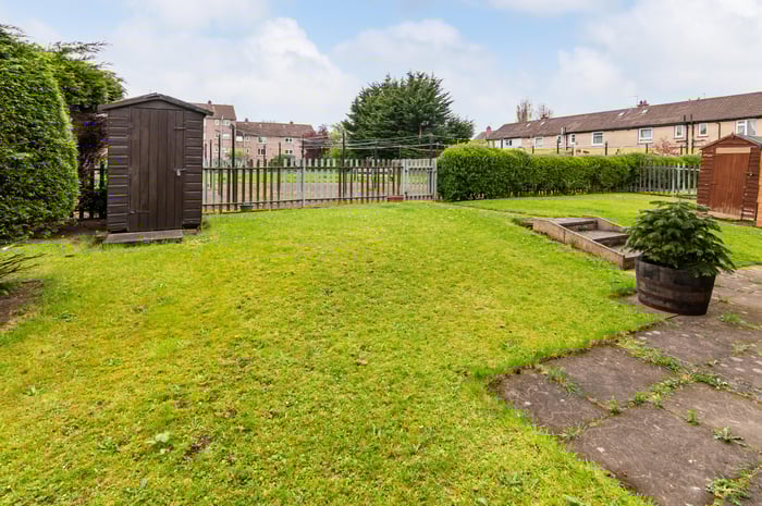 Features include gas central heating, a fitted kitchen with appliances, good size rooms, a secure entry system and TV and telephone points. Externally, the property benefits from a private plot within the rear garden, a drying green beyond, and with ample unrestricted parking to the front and on surrounding streets.