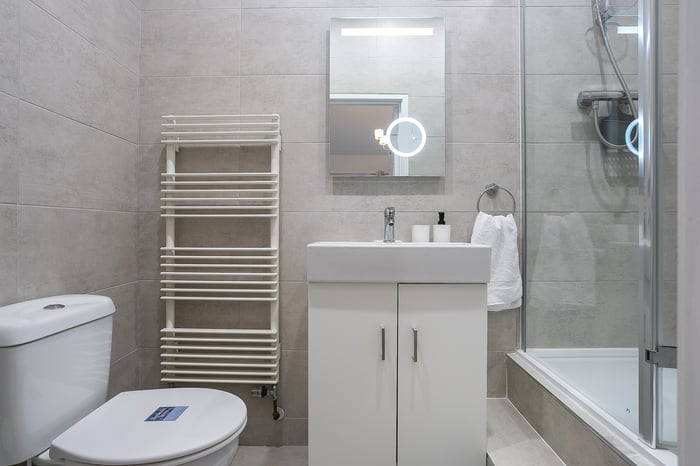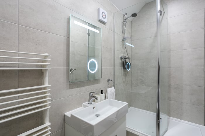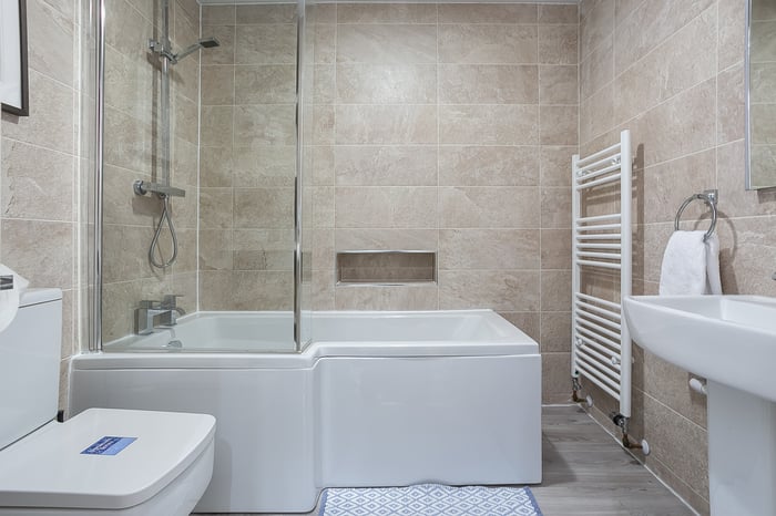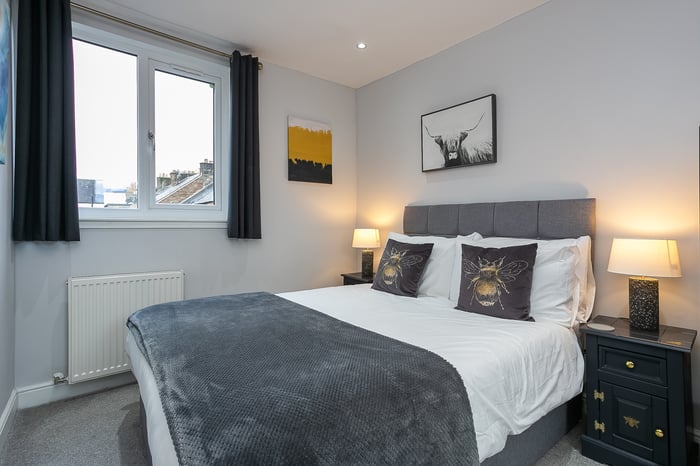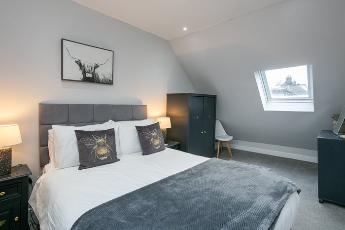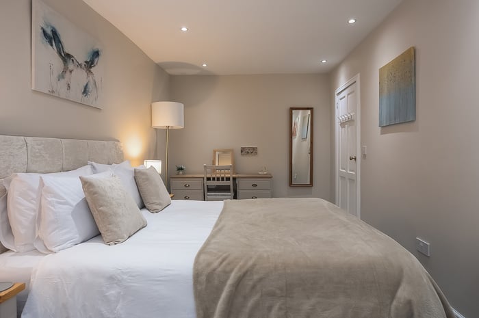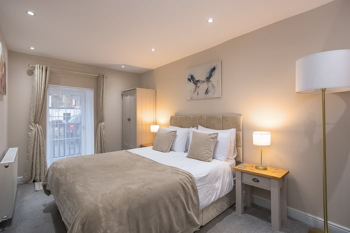 Also located on the ground floor, the dual-aspect master bedroom benefits from built-in wardrobe storage and a fully tiled en-suite shower room, whilst a further double bedroom enjoys similar, tasteful presentations and offers a good-sized, versatile space. Completing this floor, a stylish bathroom comprises a three-piece suite, a shower-over-bath, built-in storage, a ladder-style radiator, and tiled floor-to-ceiling walls.