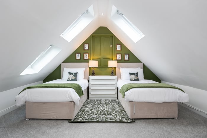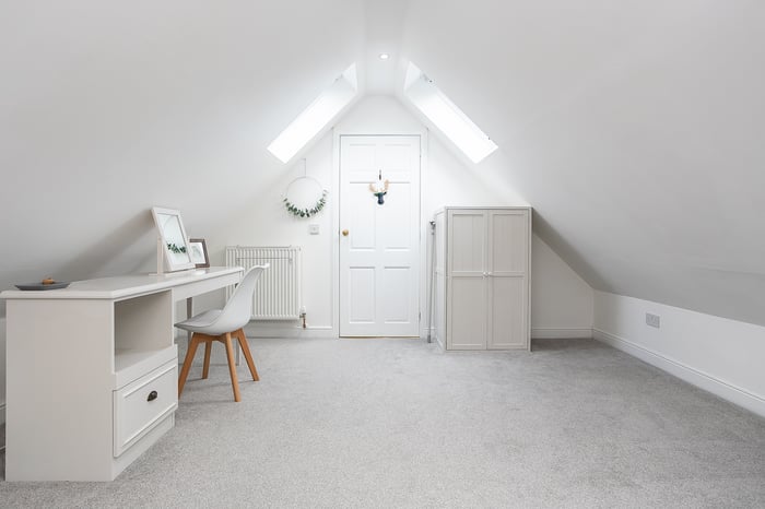Upstairs, a naturally lit landing leads to the remaining two double bedrooms. Bedroom 2 is impressively proportioned and enjoys access to extensive loft storage.