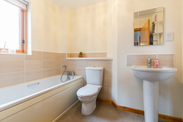 Completing the accommodation, the family-size bathroom is fitted with a three-piece suite and partially tiled splash walls.