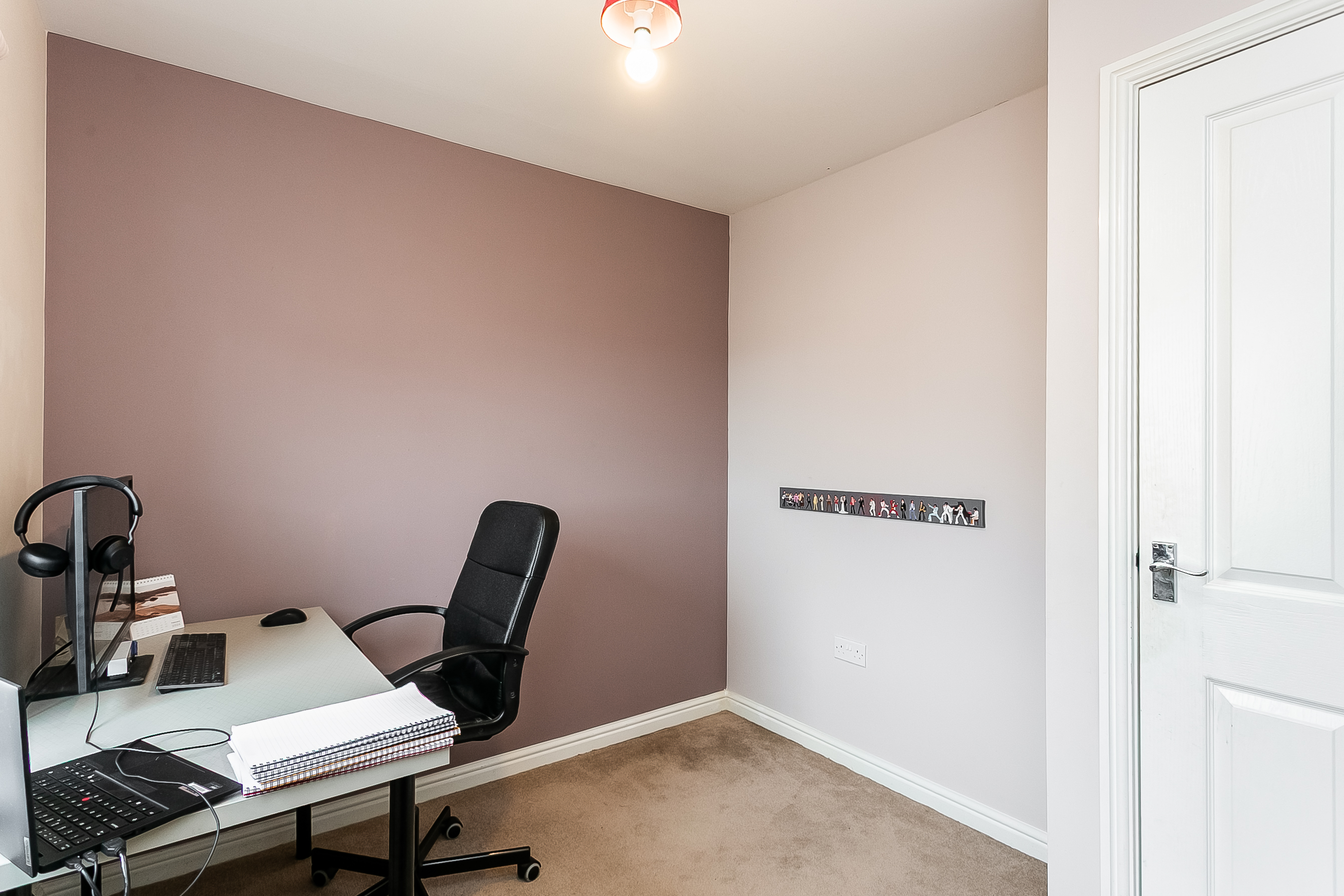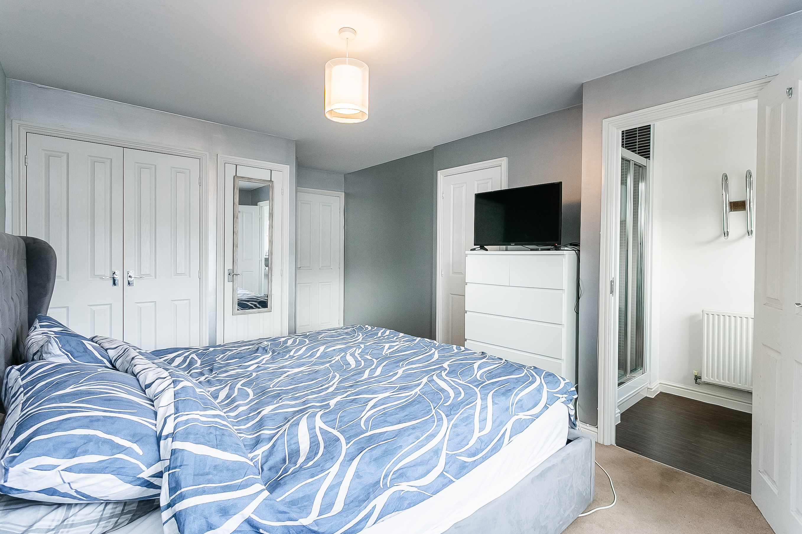 Upstairs, the generous master bedroom enjoys a front-facing position and offers excellent space for freestanding furniture, complemented by three built-in wardrobes and a modern en-suite shower room. Three further flexible bedrooms are set to each aspect, with bedroom three benefiting from a built-in wardrobe.