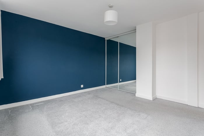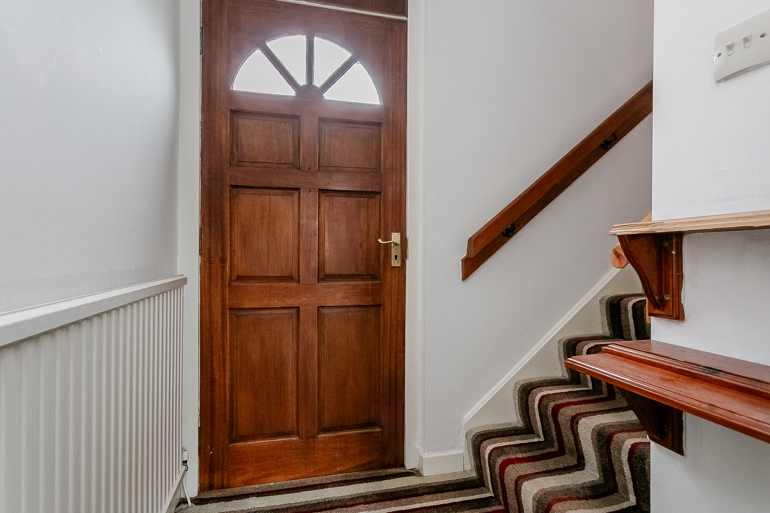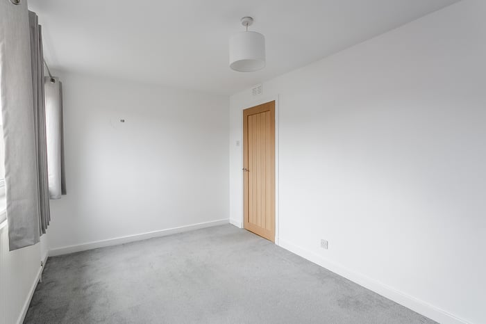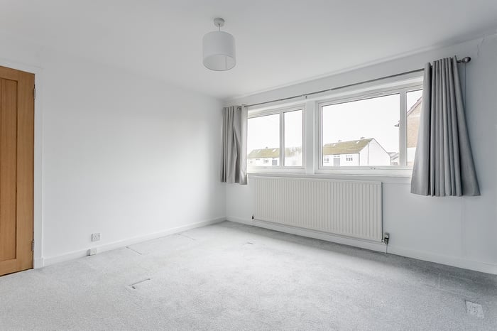 The upper level hosts two well-proportioned double bedrooms, both finished with carpeted flooring and enjoying twin windows. The principal bedroom further benefits from a built-in mirrored wardrobe.