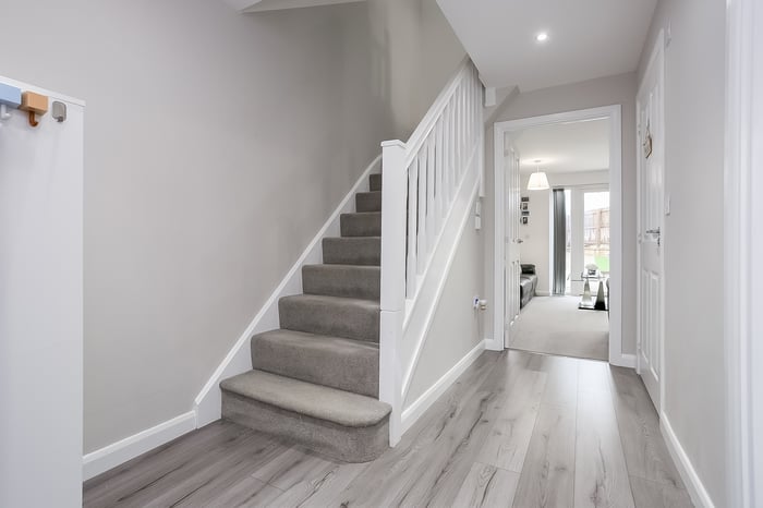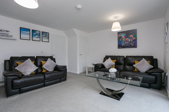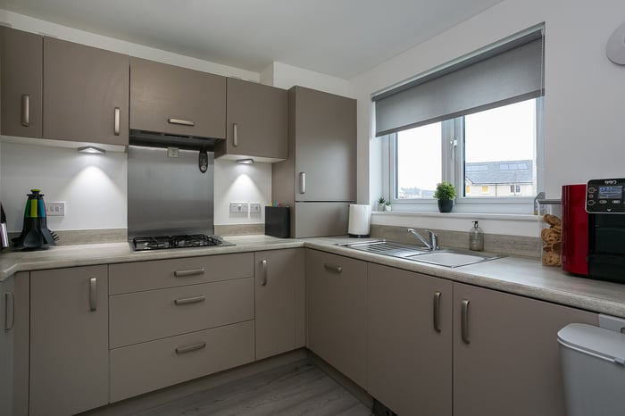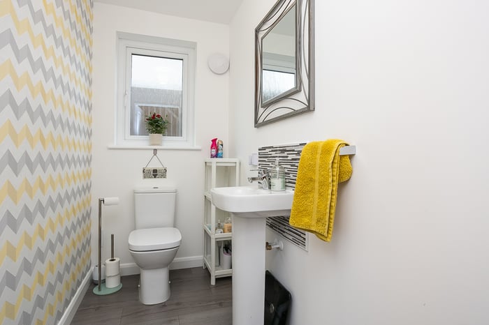 Immaculately presented, three-bedroom, semi-detached home with gardens and an allocated parking space. Located in a new, factored, modern development, on the outskirts of Penicuik, Midlothian. A welcoming entrance hall affords access to the carpeted stairs leading to the upper hall, and throughout the ground floor, including a convenient WC with a side-aspect window and built-in storage cupboard.