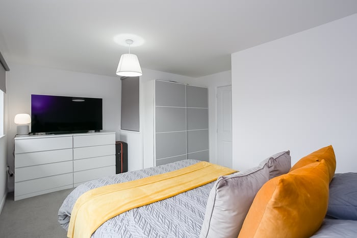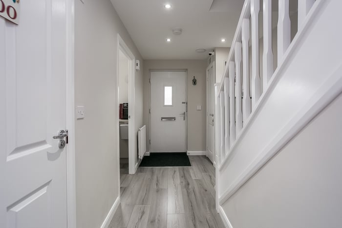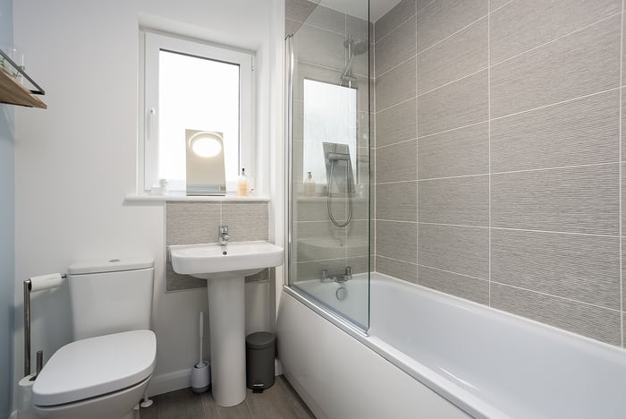 On the upper floor, bedroom one offers a generously sized room, with two windows, light decor, a fitted wardrobe and carpeted flooring; whilst two further bedrooms are set to the rear, overlooking the garden. Completing the accommodation, the bathroom is set to the side, with a modern three-piece suite including a shower over the bath and tiled splash walls.
