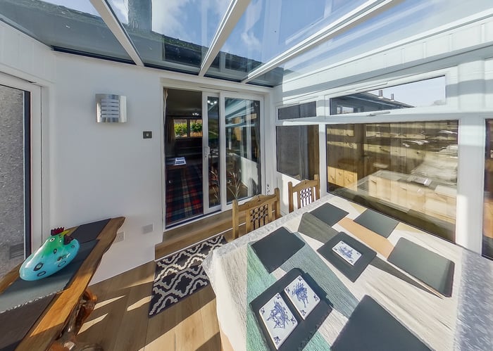 • Comprises an entrance hallway, living/dining room, conservatory, kitchen, two double bedrooms and a family bathroom.