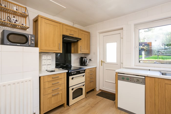 • Characterful and tastefully finished throughout, highlights include a modern fitted kitchen, a bright bathroom, and varnished hardwood flooring for the lounge.