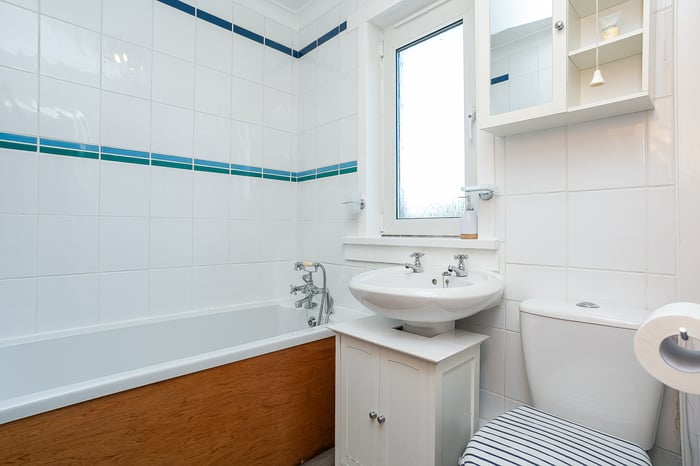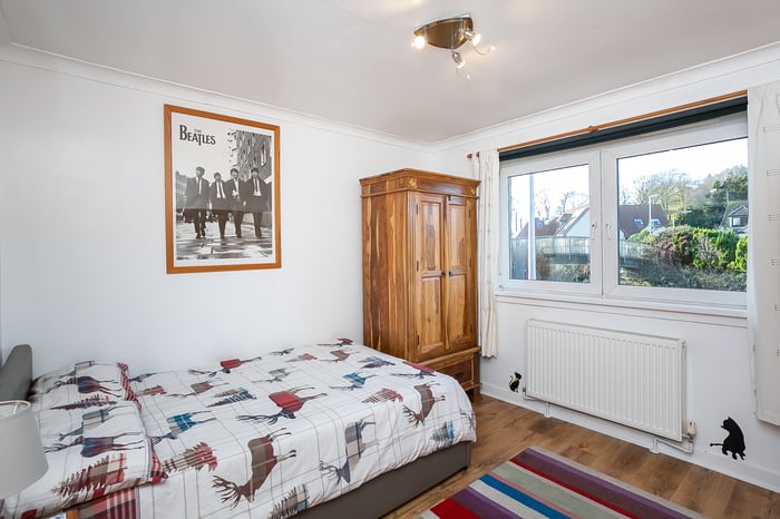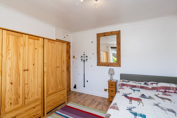 The well-proportioned bedrooms are set to opposite aspects, both featuring central light fittings, modern flooring and ample space for freestanding storage. Completing the accommodation, set to the front, the bathroom is fitted with a three-piece suite, including a shower unit over the bath, tiled splash walls, wood-effect flooring and a ladder-style radiator.