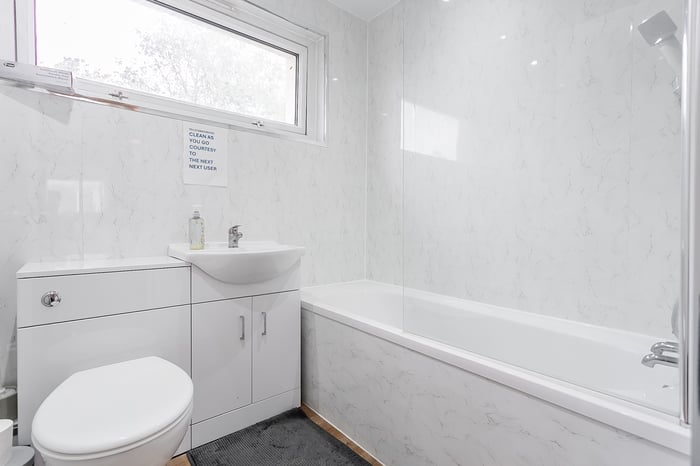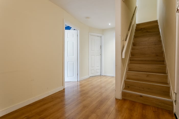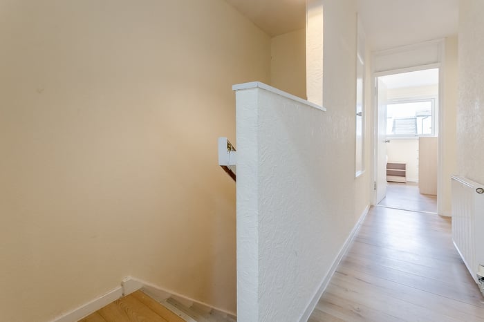 Upstairs, leading to bedrooms two, three, and four, each benefiting from wood-effect flooring, light décor, and built-in cupboards providing ideal storage. Completing the property is the family bathroom, fitted with a three-piece suite and a shower over the bath.