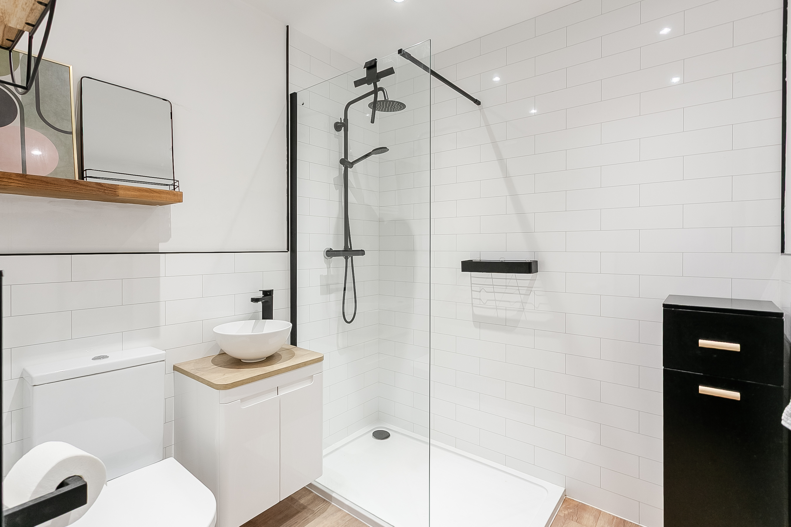 Completing the property is the shower room, comprising a modern three-piece suite with a walk-in shower and a ladder-style radiator.