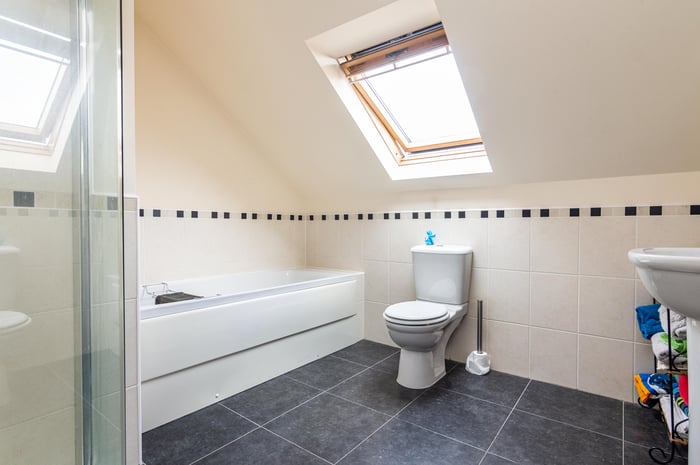 Completing the accommodation, the bathroom is fitted with a three-piece suite, a separate shower cubicle with an electric unit and tiled splash walls.