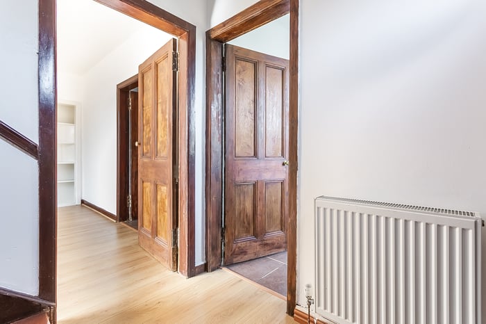 Two further double bedrooms, set to the rear, provide flexible living space, with one featuring a built-in press cupboard.