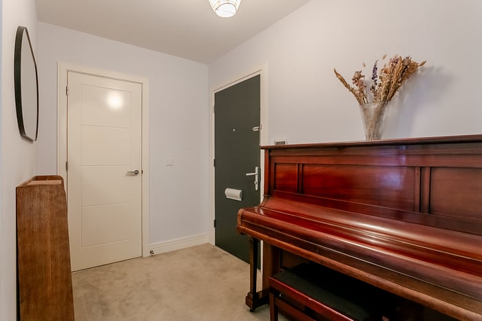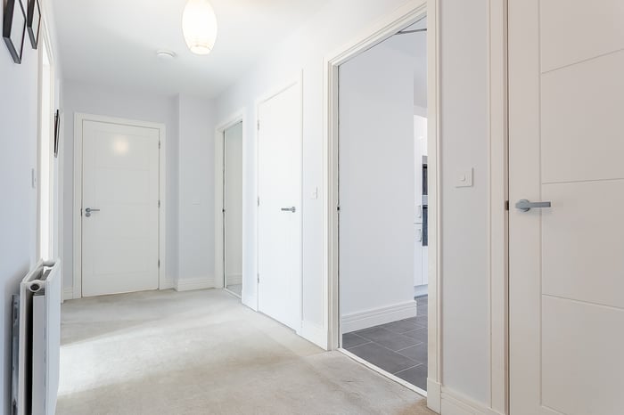 A bright and inviting entrance hall provides access to all rooms throughout this beautifully presented property, with the living room, kitchen, and all three bedrooms benefiting from elegant Juliet balconies that fill each space with natural light and a wonderful sense of openness. The spacious living and dining area features soft carpeted flooring, central light fittings, and French doors opening onto a Juliet balcony, creating a bright and airy setting perfect for both relaxing and entertaining.
