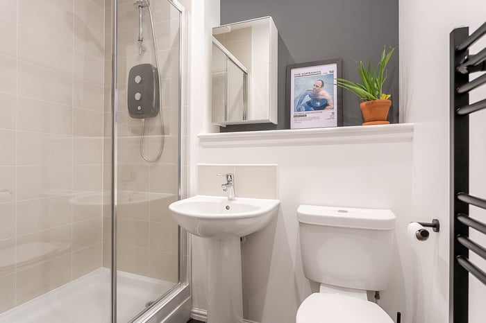 Completing the accommodation, a stylish family-sized bathroom is fitted with a three-piece suite including a shower over the bath, tiled splash walls, and a ladder-style radiator.