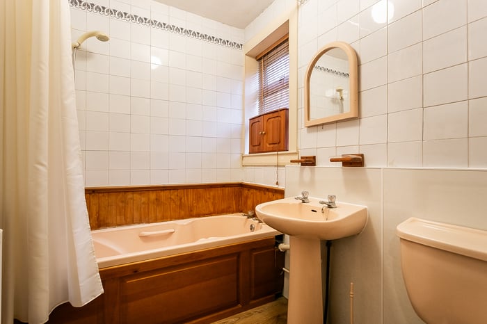 A second double bedroom sits adjacent. Completing the accommodation, the bathroom is fitted with a three-piece suite including a shower over the bath and tiled splash walls.